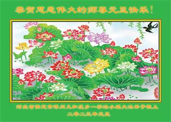 每到逢年过节,我们都和被非法关押的大法弟子一起给伟大的师父发问候。无论什么时候,高墙内的亲人和我们都是一个整体。我们对法轮大法的美好、师父的伟大始终坚信不移。乌云终究遮不住太阳,法轮大法佛光普照众生的日子即将到来。