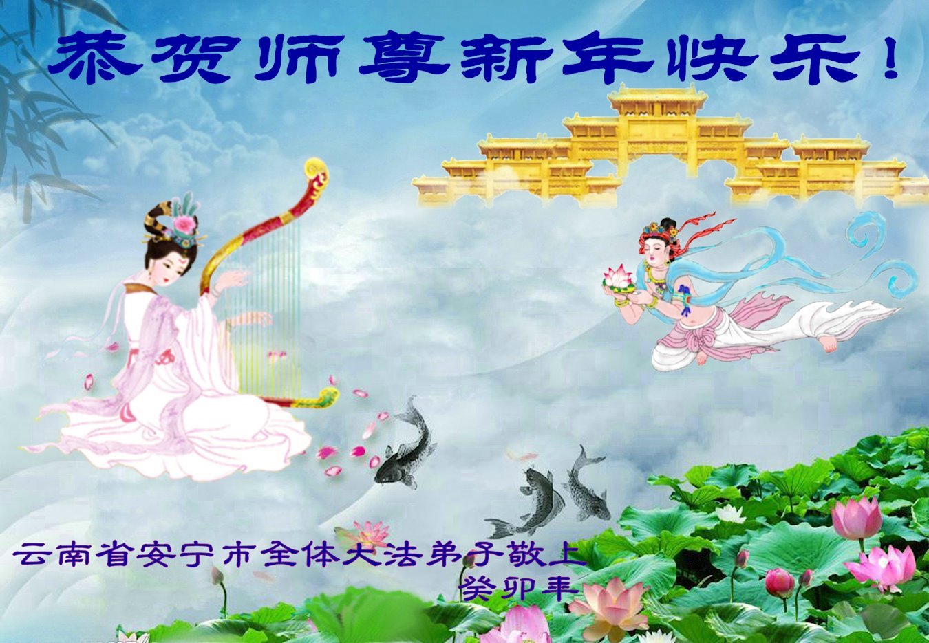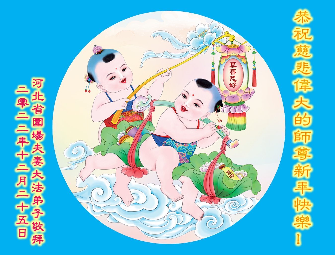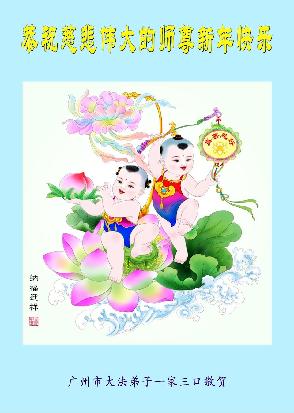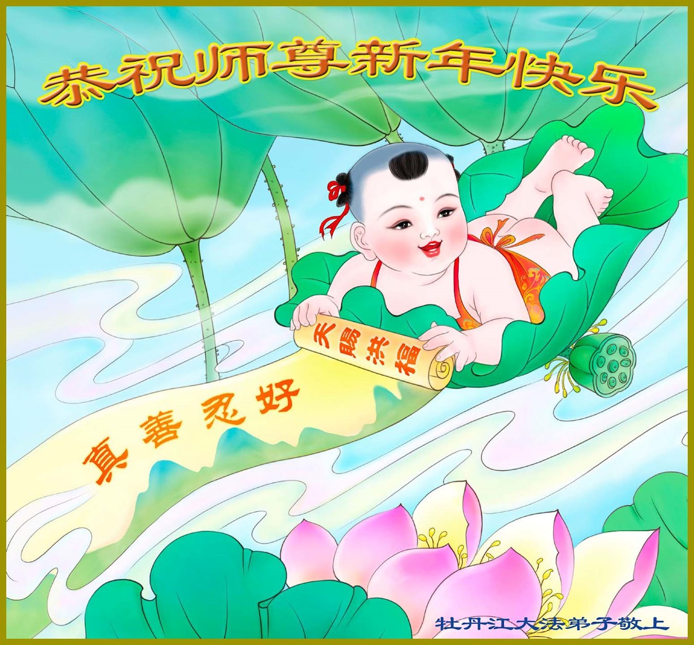 在这辞旧迎新之际,我俩口真心恭祝慈悲伟大的师尊新年快乐!