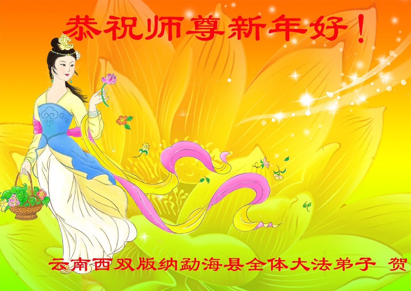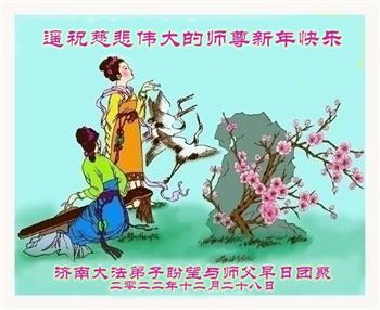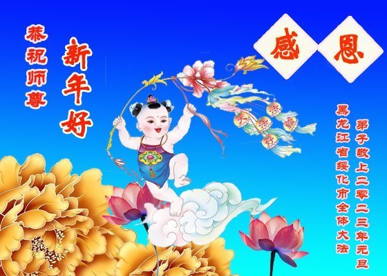 在新年来临之际,请允许我代表被非法关押在吉林省女子监狱的延边大法弟子,向慈悲伟大的师尊表达感恩:师尊好!师尊辛苦了!恭祝慈悲伟大的师尊新年好!感恩师尊慈悲救度!