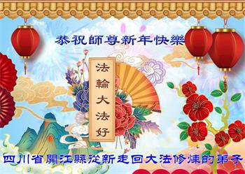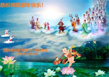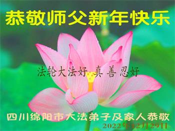 四川省什邡市一家庭大法弟子及新学员携家人敬上