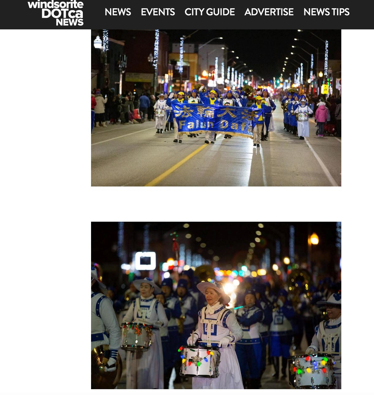 他说,“天国乐团这么多人,而且从多伦多那么远的地方来到我们温莎,真了不起,太棒了!”对于真、善、忍的价值,他也表示认同:“在圣诞老人游行里,你们很受欢迎。你们来到我们社区,给我们增添了节日的气氛,让我们充满了圣诞的活力,一片其乐融融。”