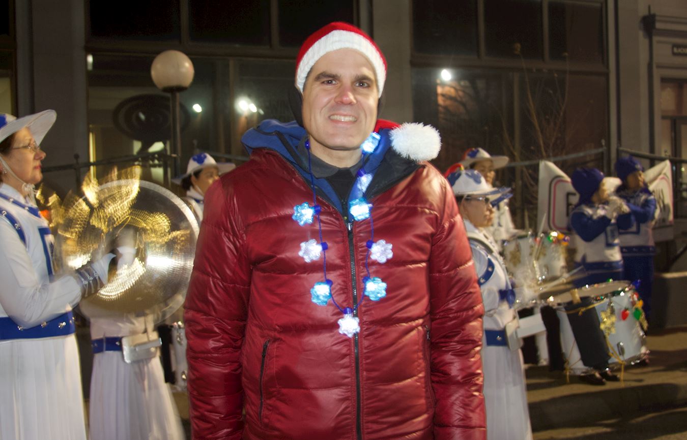 安德鲁·多恩(Andrew Downe)是代表安省温莎-特库姆塞区(Windsor-Tecumseh)的省议员。在游行开始之前,天国乐团正在排练。安德鲁说:“我们已经在这里听他们演奏了二十多分钟了,他们演奏很非凡!我真希望能够经常听到他们的演奏。他们给我们带来了圣诞节日的欢快气氛。”