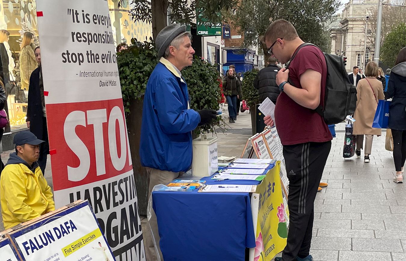 不少人在法轮功学员展示的图片前驻足,仔细阅读说明文字。一位西人女士停下指着展板向身边的朋友介绍原因,她对朋友说,“它(中共)还在他们(法轮功学员)活着时摘取器官(贩卖)”,“这实在太令人恶心了,怎么能有这种事情发生呢?”她的朋友脱口而出。