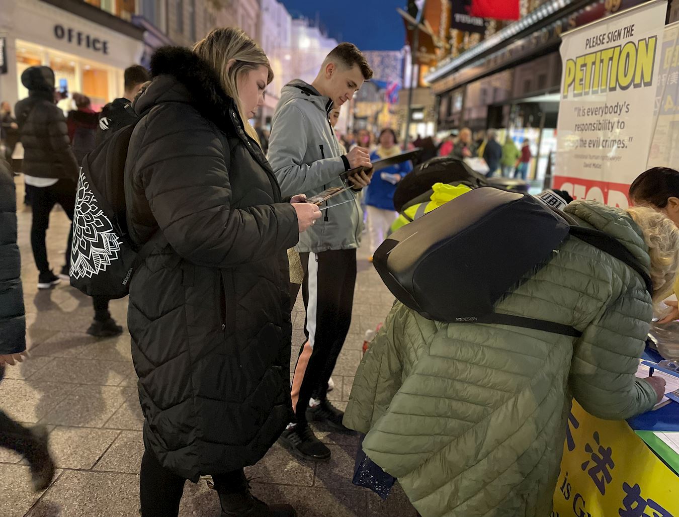 “我们会把(法轮功学员在中国的遭遇)告诉给更多的人,希望我们的签名可以起到作用。”艾米莉说。临走前,她鼓励学员说,“谢谢(你)告诉我们(真相),要坚持下去啊!”