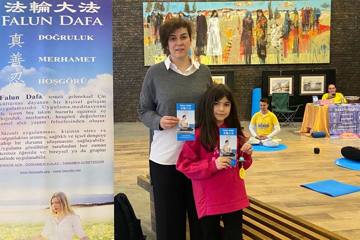 埃斯拉女士(Esra)和她的女儿也想学炼法轮功功法。当埃斯拉学打坐时,她说她在整个打坐过程中都听到鸟叫声。“有十五秒的时间,我的大脑一片空白,在那十五秒里,我正走过一片森林,不时听到鸟叫声。”她女儿说:“我也听到了鸟叫声。”