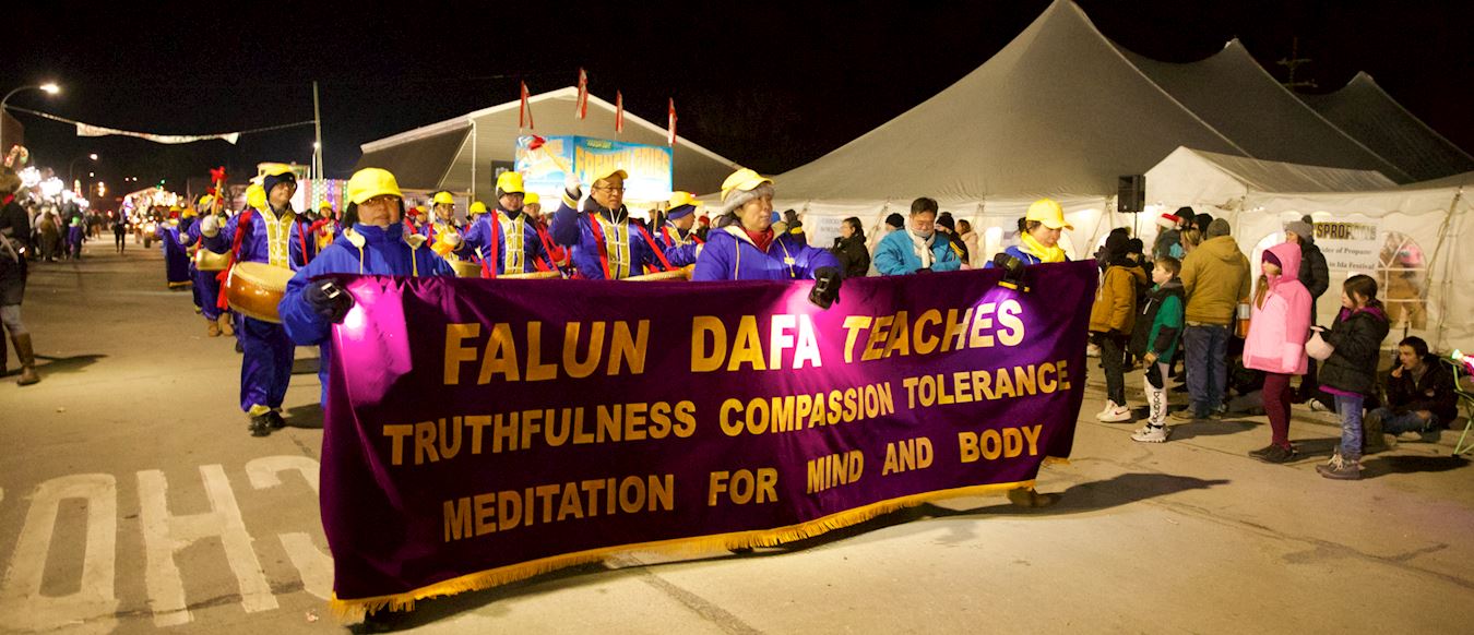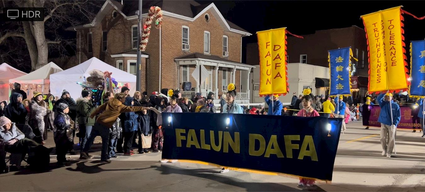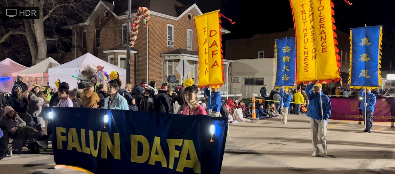 大约一百二十个灯光游行方阵参加了本次游行,来自各具特色的团体展现了自己独特的灯光设计。作为唯一一个华人组成的方阵,密西根州当地法轮功学员们,和来自加拿大温莎市,俄亥俄州的特莱多市的学员们,为本次灯光游行带来了旗阵、整齐响亮的唐鼓阵,法船设计的灯光花车,以及“法轮大法教授真、善、忍”、“法轮大法好”、“世界需要真善忍”等中英文横幅。