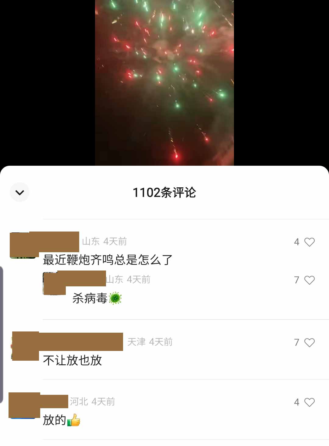 “燃放鞭炮能驱毒,支持!”