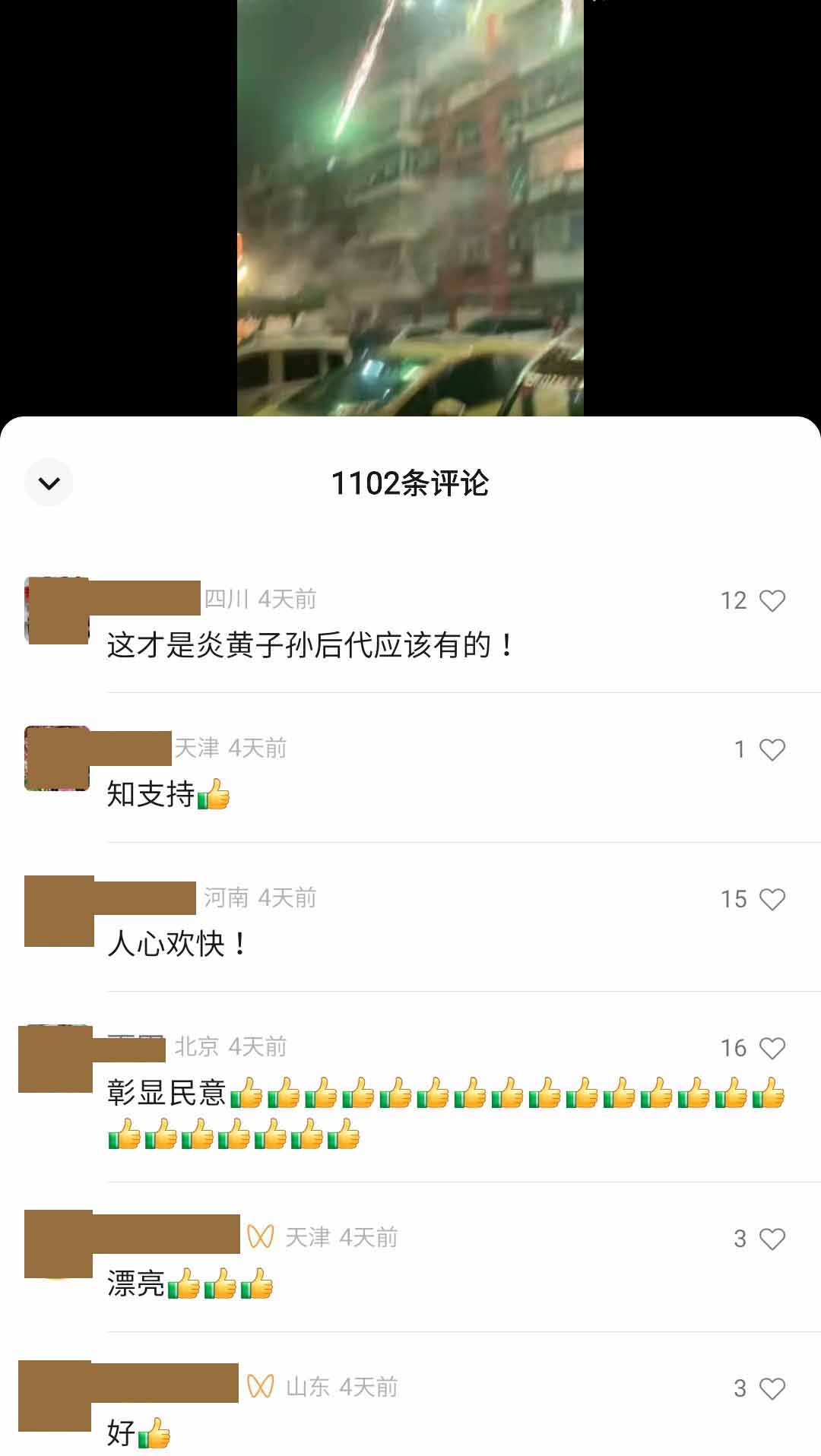 “全国人民一起放烟花”