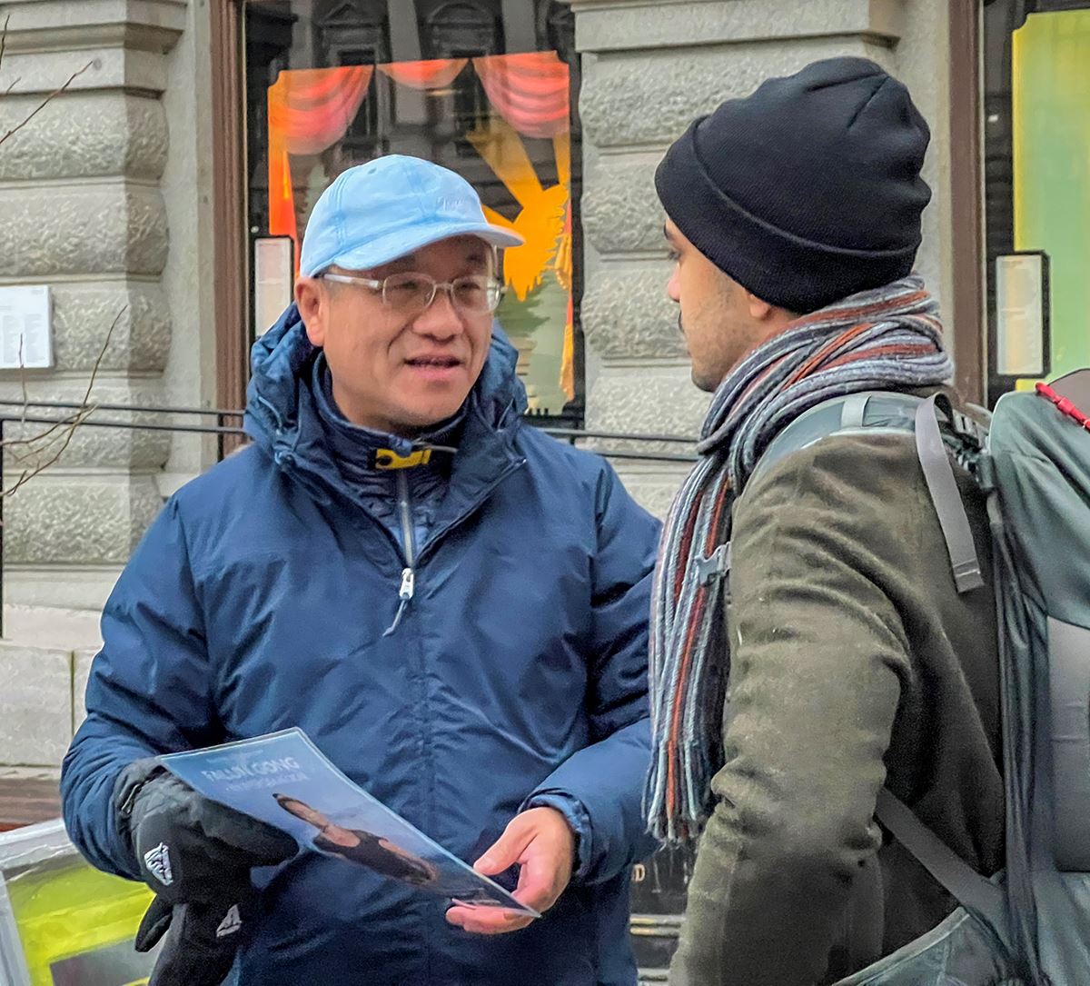 他表示对功法很感兴趣,还讲述了自己似乎与法轮功有着不解之缘。“我九六年出生,居住在哥德堡周边的一个小镇,常常来斯德哥尔摩。我每次经过这个老城时,几乎都会遇到你们在这里,有时看不到时,心里就会想:唉!今天怎么没看到法轮功啊!那时我会感到有点遗憾。”他笑着说,“今天终于又看到你们了,真的是很高兴!”
