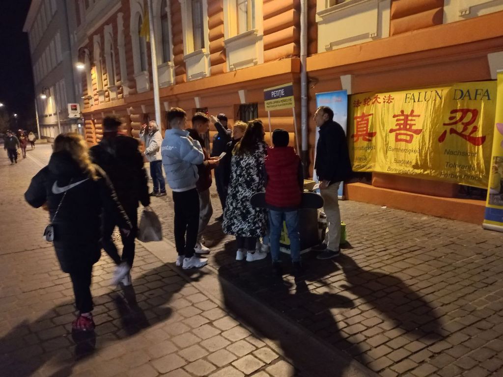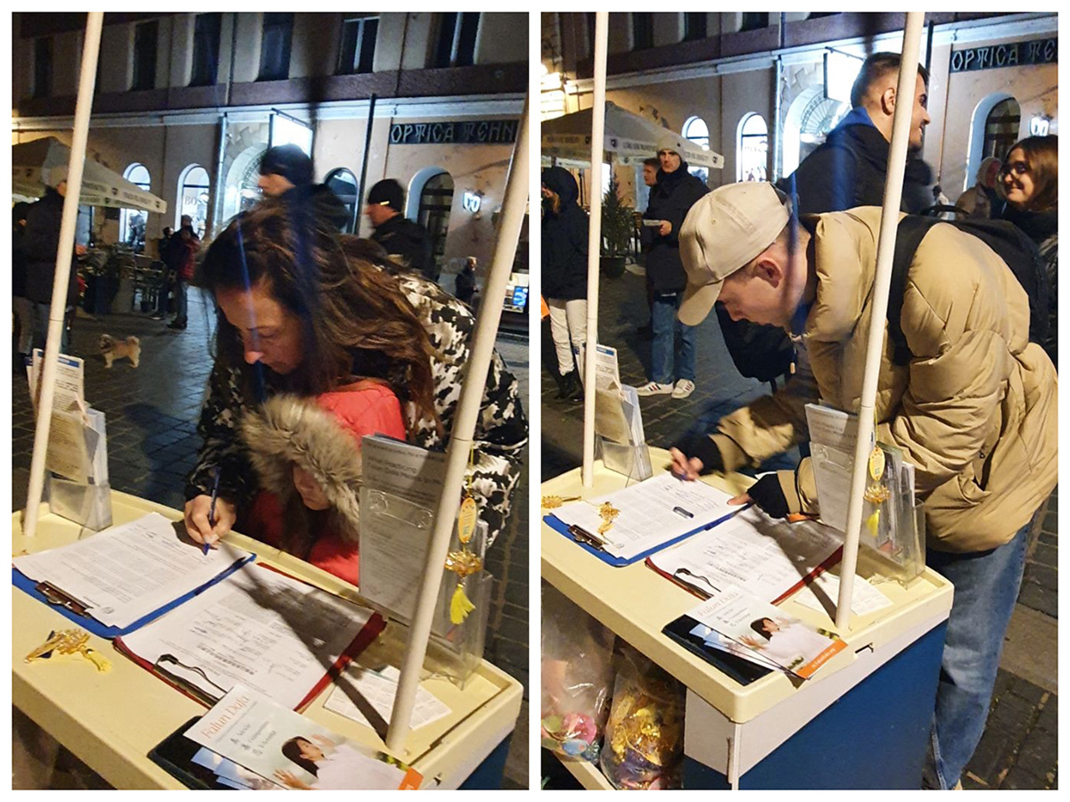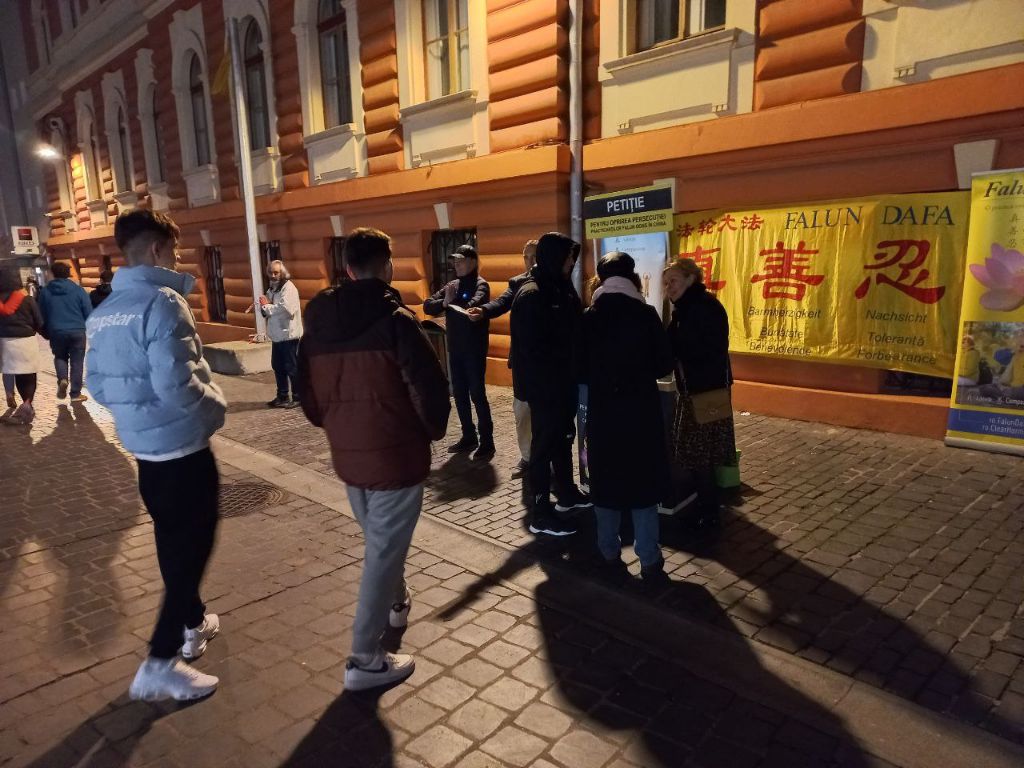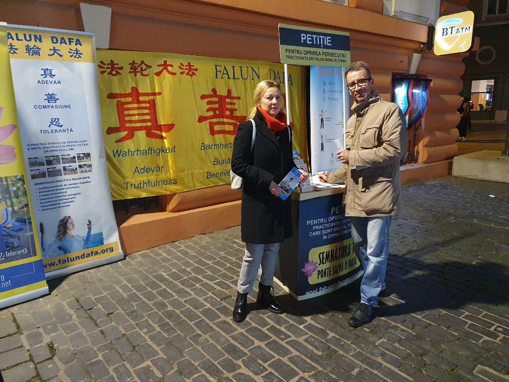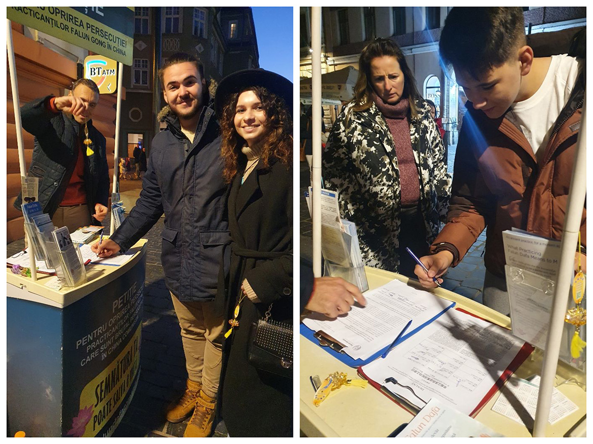 ![]() 图1~2:每逢周六,法轮功学员经常会来到罗马尼亚布拉索夫老城最繁华的街道——共和国街道(Republicii Street)设立真相点,传播法轮功的真相。 |