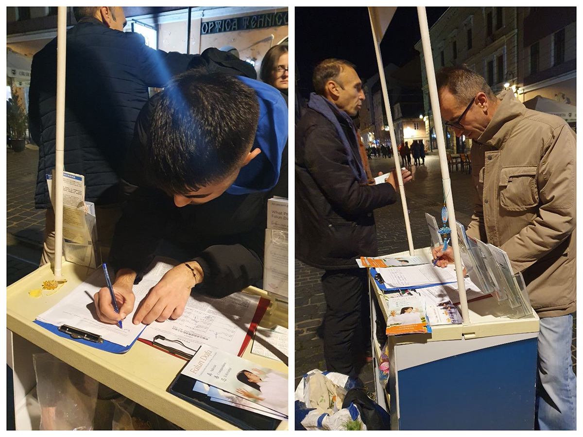 ![]() 图3~6:人们支持法轮功学员反迫害,纷纷在制止活摘法轮大法修炼者器官的请愿书上签名。 |