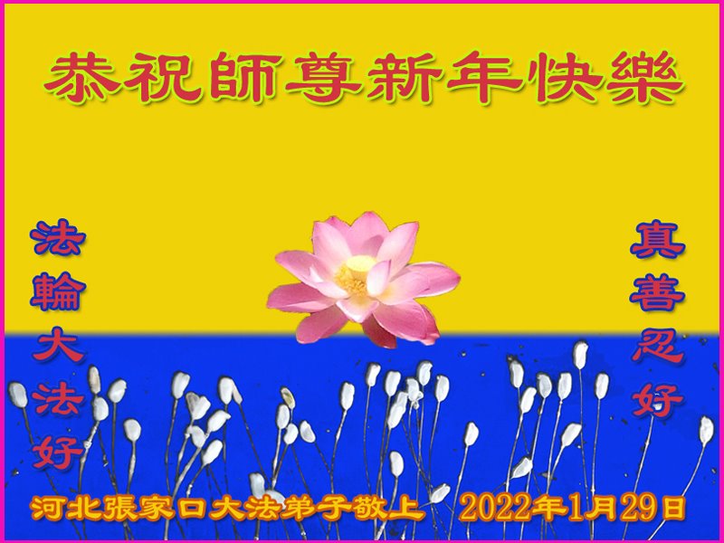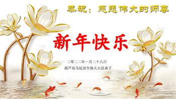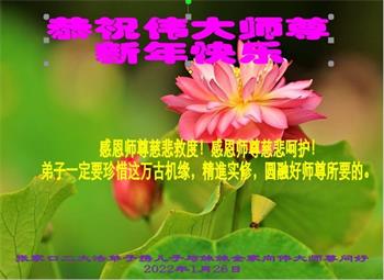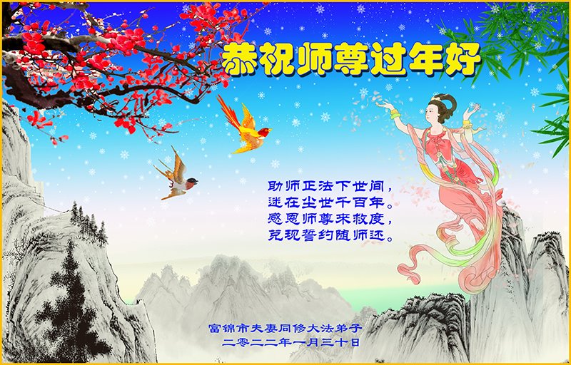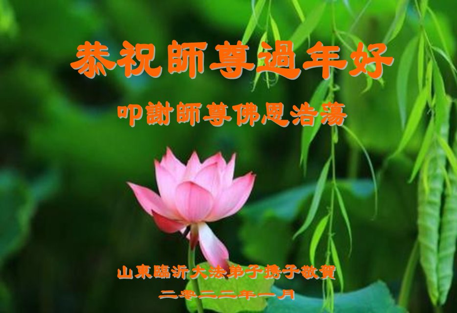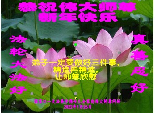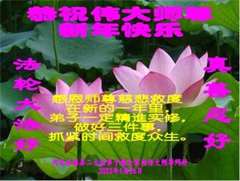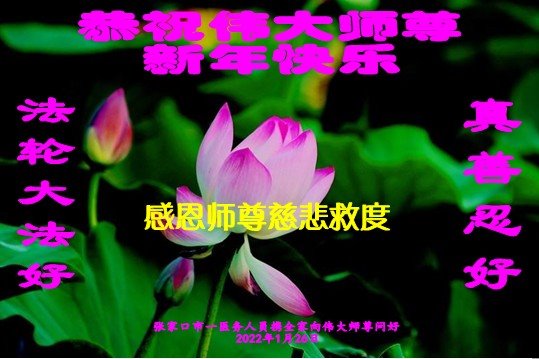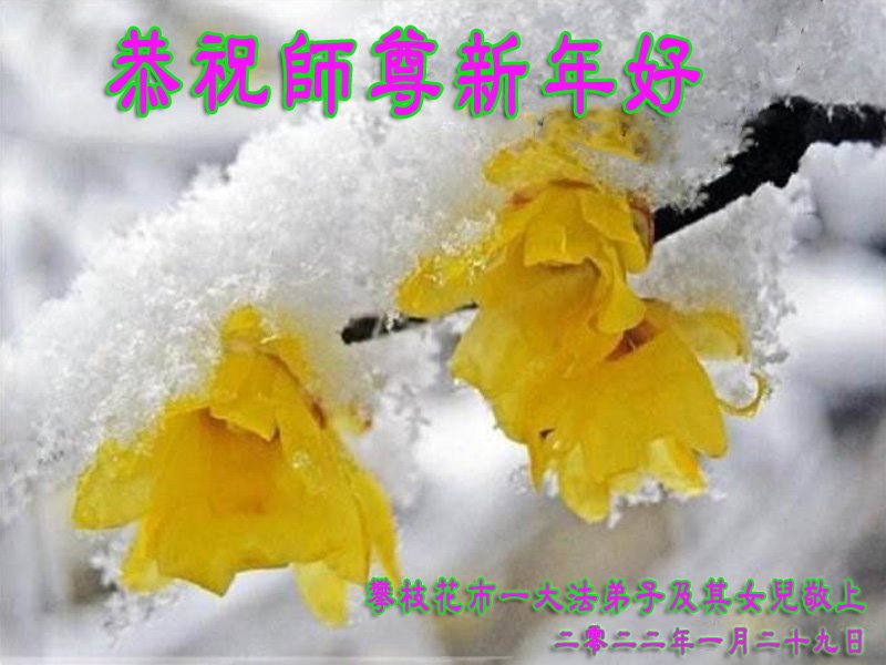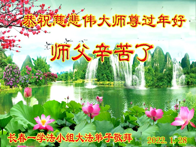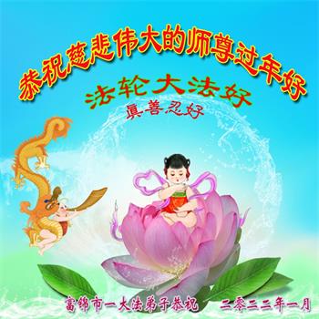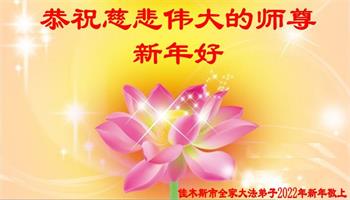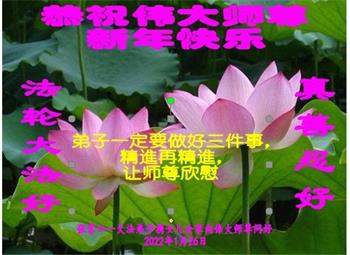 【明慧网二零二二年二月一日】法轮飞旋,光阴如梭,洪贯全天体的正法洪势迅不可挡,已向法正人间过渡。遍布世界的法轮大法弟子与得到大法福报的众生都真切感受到了大法的威力、慈悲和殊圣。在这辞旧迎新的传统新年,各国大法弟子恭祝师父新年好!虔诚感恩师尊的慈悲看护,庆幸得到这万年难遇的圣缘,在转瞬即逝的正法修炼路上弟子们将精進不怠。