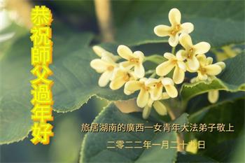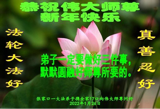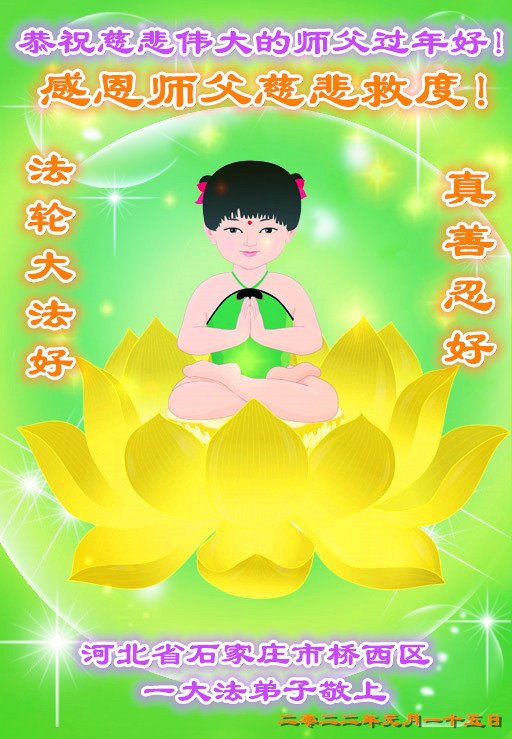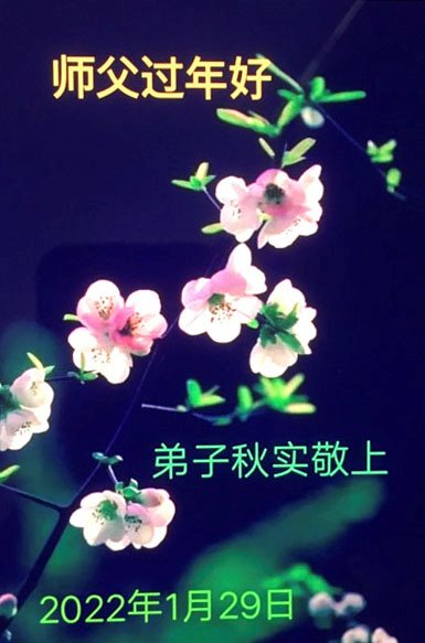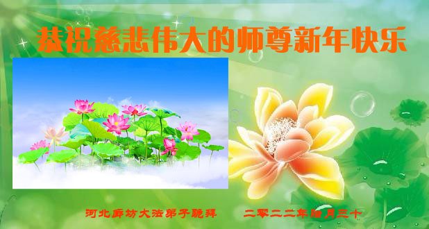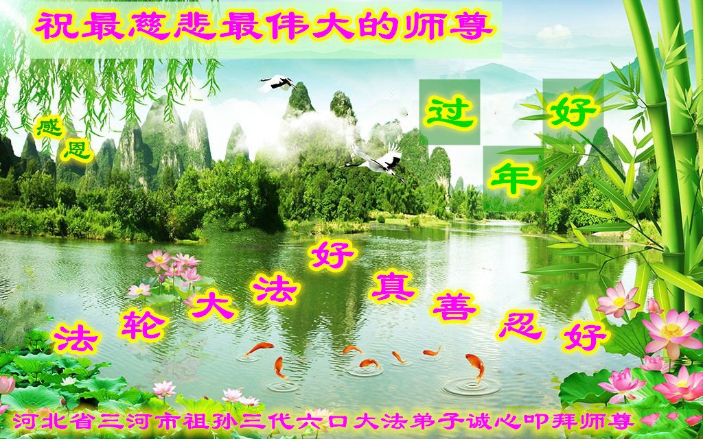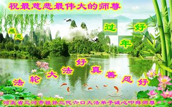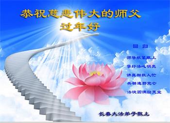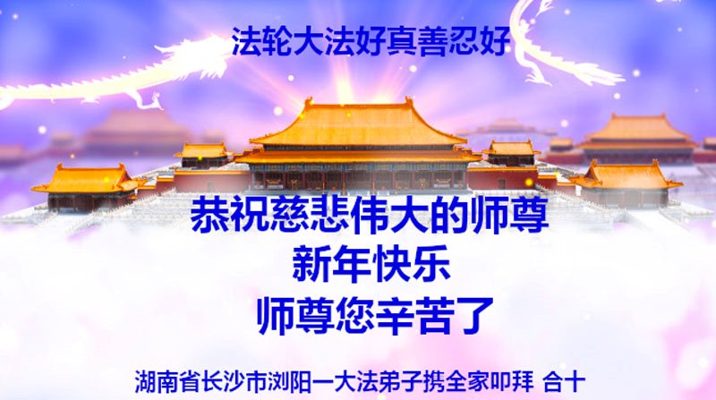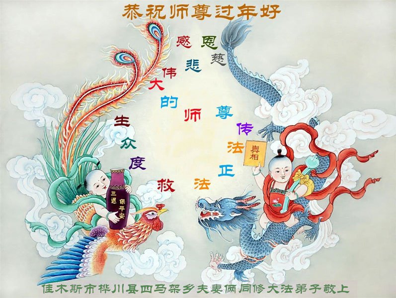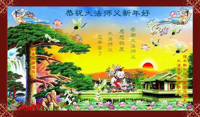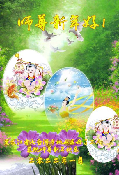 师父过年好!感恩师尊慈悲救度!弟子一定珍惜大法弟子的神圣称号,精進实修,同化大法,多救众生,完成好大法弟子的使命与责任,弟子恭迎师尊早日回家乡,共同助师法正人间,待寰宇承平日,圆满随师还。