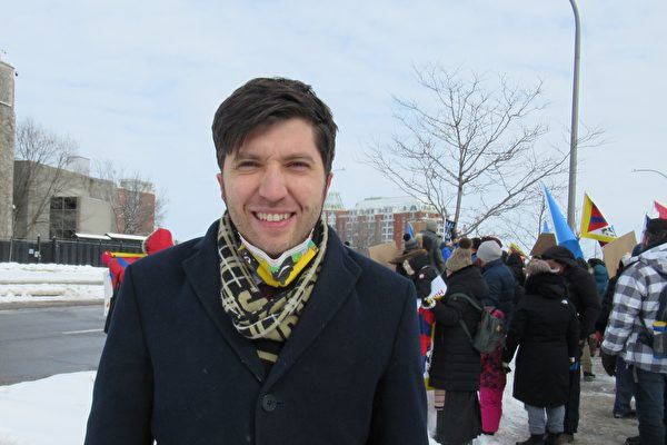 .纪.元;)'>图2:北京冬奥会开幕日,加拿大国会议员吉尼斯在加拿大首都渥太华中使馆前谴责中共群体灭绝罪行。(大.纪.元;) |