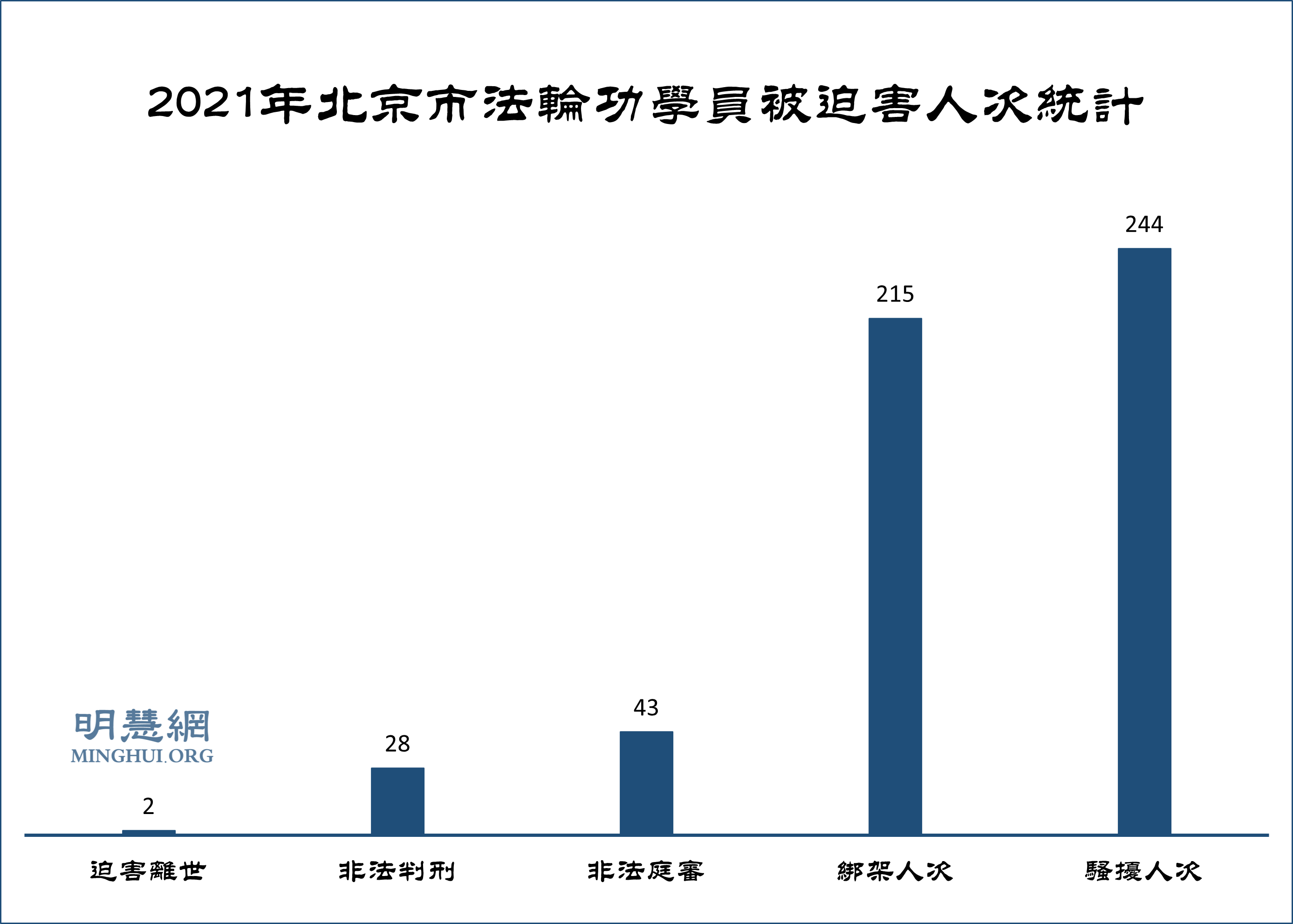 ![]() 图:2021年北京市法轮功学员被迫害统计 |