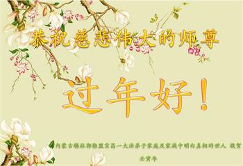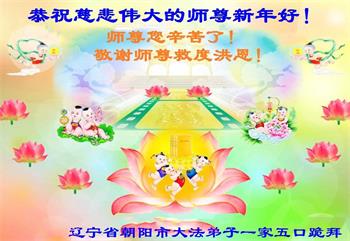 师尊过年好!师尊您辛苦了!我是一名老年女大法弟子,今年八十五岁,九七年得法。在这二十五年的修炼路上,每前進一步,都离不开师尊的保护和加持,每提高一个层次,都凝结着师尊的心血。特别是我的家人,儿孙他们都相信大法,支持大法,都很支持我修炼。他们都受益于大法,并得到了福报。