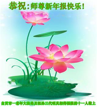 自贡市一老年大法弟子及祖孙三代明真相得福报的十一人敬上