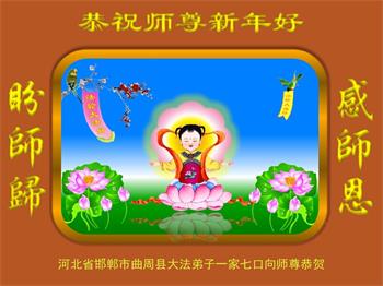 在新年来临之际,我们夫妻同修及全家共同祝愿伟大的师尊新年快乐!