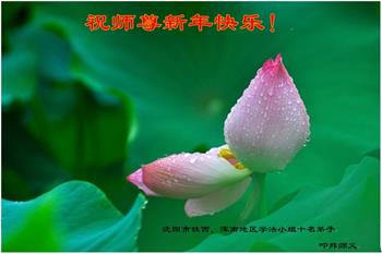 在这新年到来之际,弟子们由衷的说一声:师父,谢谢您!师父您辛苦了!弟子们今后一定要多学法,做到真修,实修,珍惜师父为我们安排好的神圣缘份,整体配合好,兑现誓约,多救人,不辜负师父的慈悲苦度!