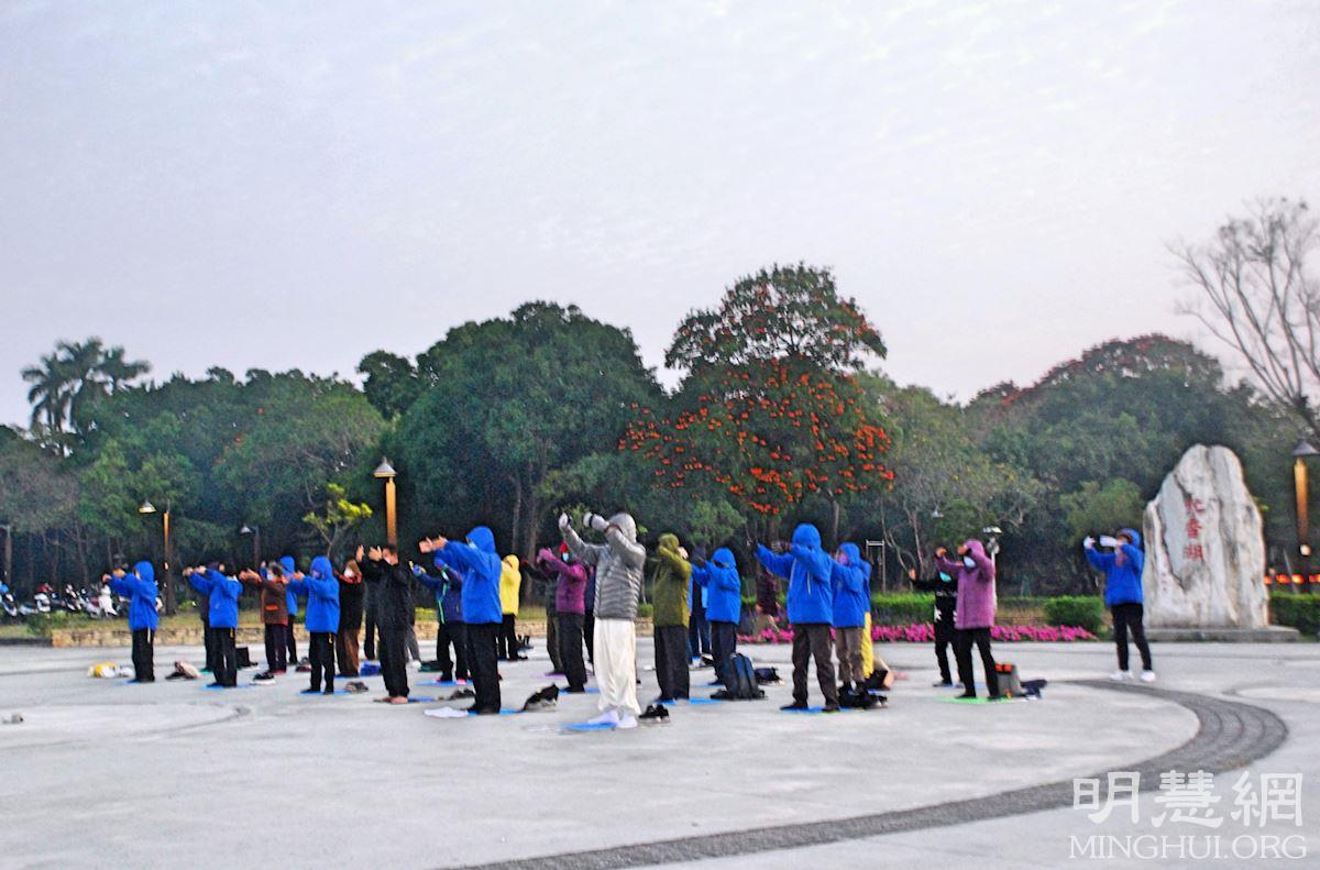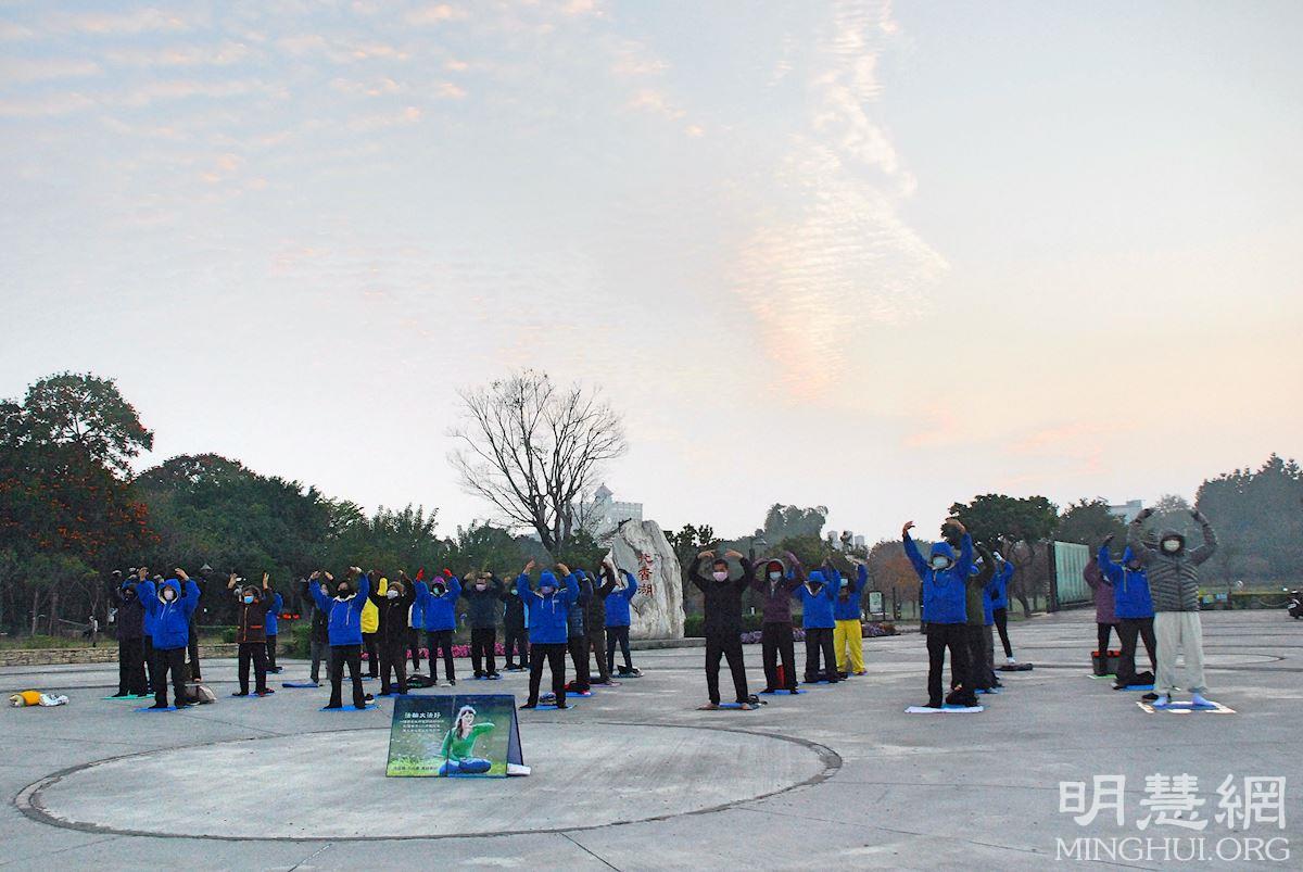 ![]() 图1~3:二零二二年二月六日,嘉义法轮功学员在香湖公园门口广场晨炼,传播法轮功的美好。 |