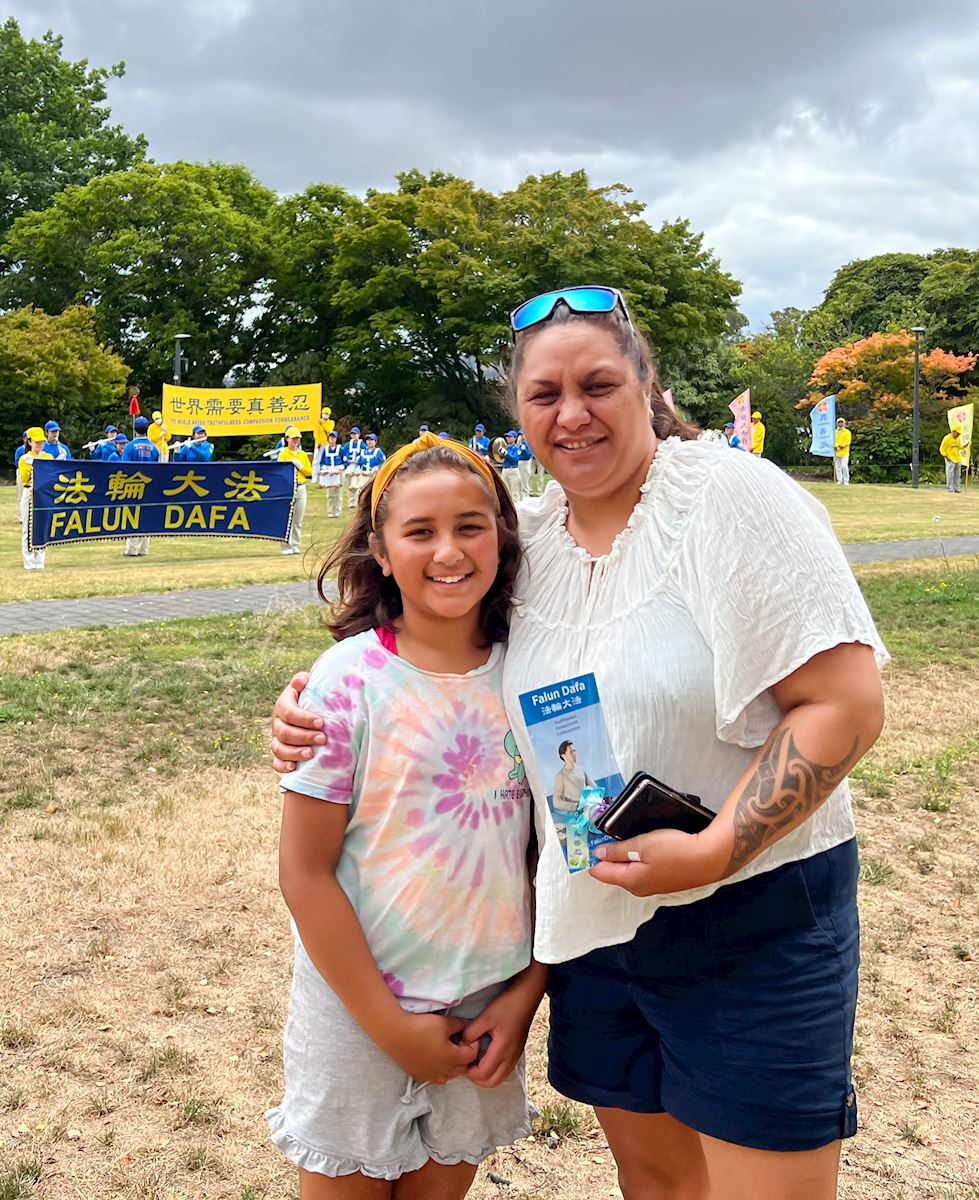她说:“以前我还不了解法轮功,看完影片后,我就什么都明白了。今天这么巧,马上就在这里看到他们游行和炼功,太好了!我打算把这些传到社交媒体上,让我们的毛利族人也来了解和支持你们。”