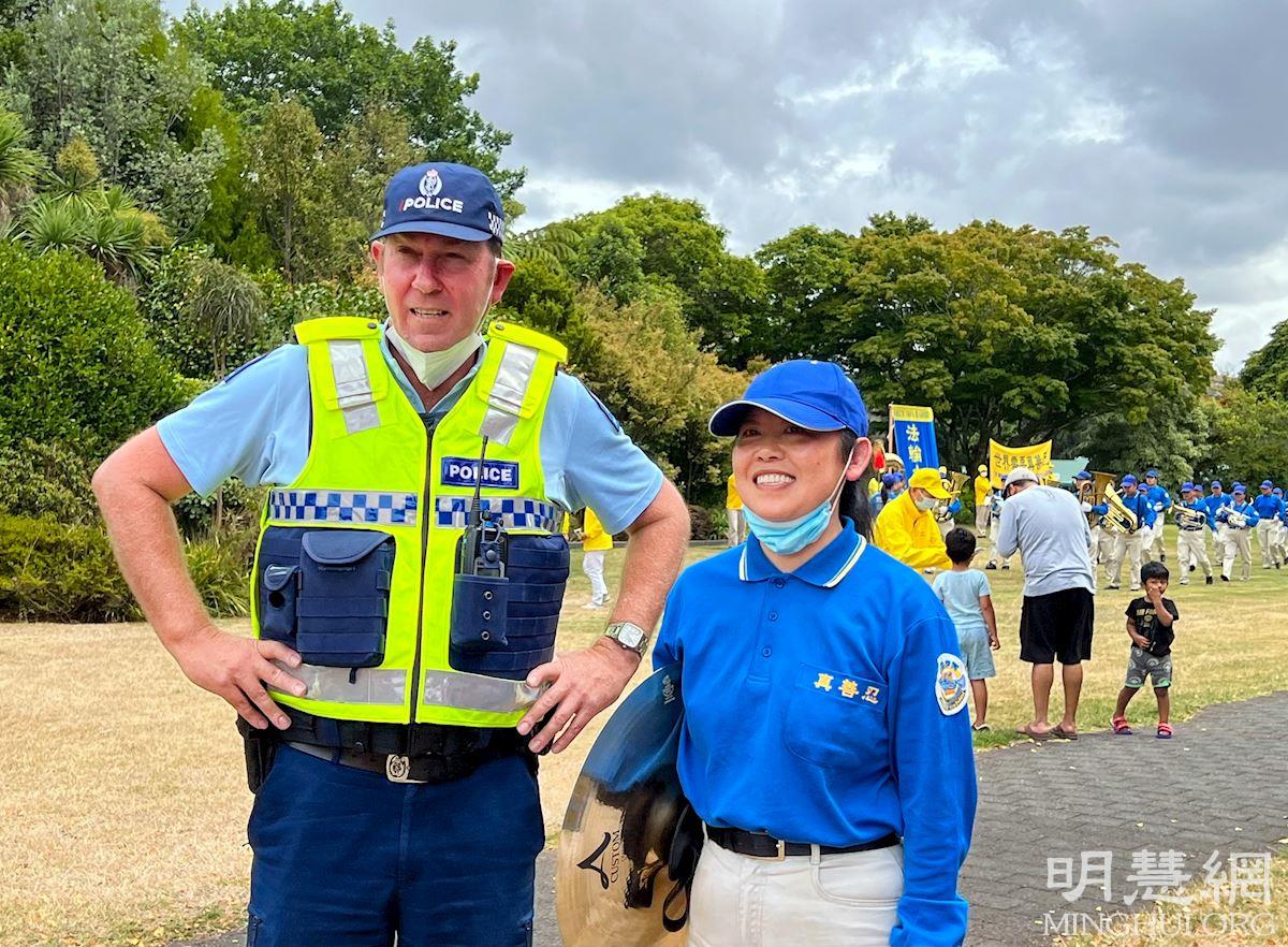 戴夫·蒂德马什(Dave Tidmarsh)是负责安保工作的警察之一,他介绍说:“我们的工作是确保今天的游行安全的举行,并且帮助和照顾好这个团体。我很高兴能够帮助到他们,并成为他们活动的一部份。演出很棒,音乐也超棒。真、善、忍的理念,不但使大家都受益,也是我们警察的理念。今天街上有不少人,这次活动应该有很好的关注度。”