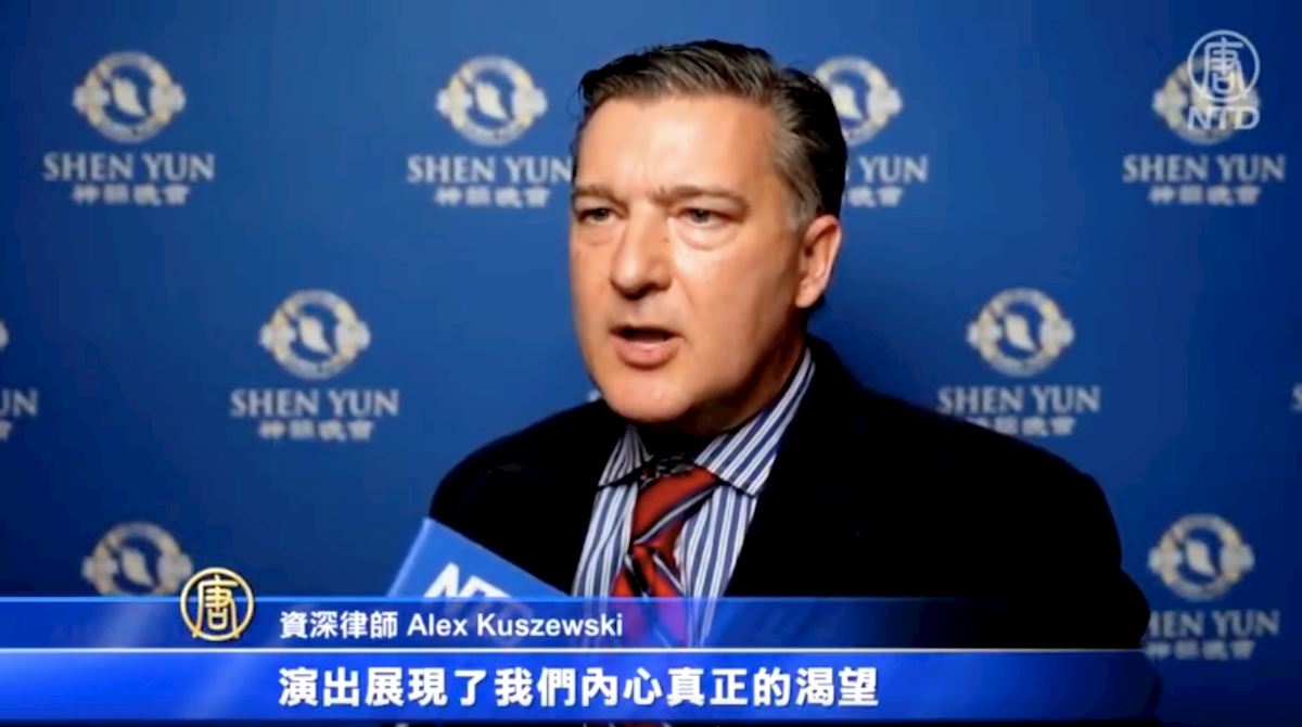 !唐!人:电视截图)'>图12:资深律师库舍夫斯基先生(Alex Kuszewski)表示神韵是震撼人心的演出,也使他的精神得到了提升。(新!唐!人:电视截图) |