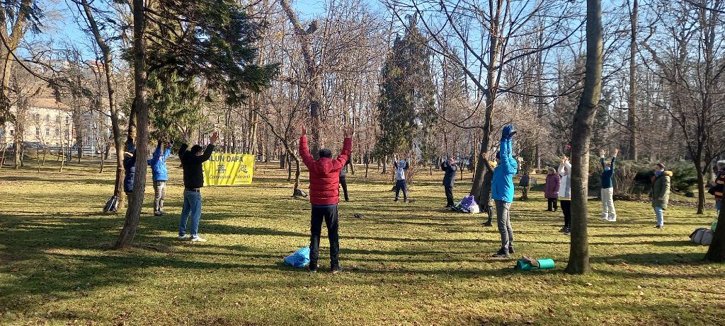 ![]() 图1:2月25日至27日,法轮大法学员在克卢日中央公园的活动中炼功 |