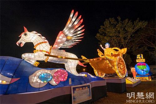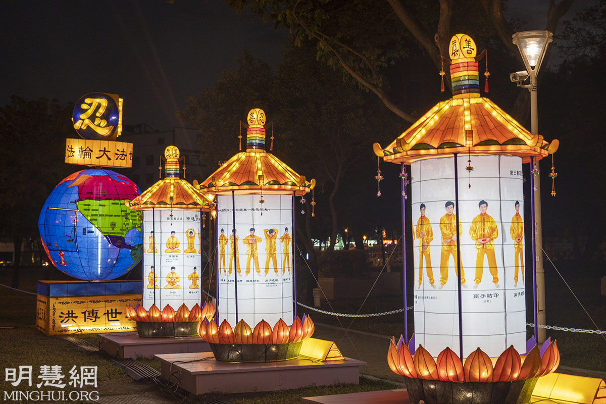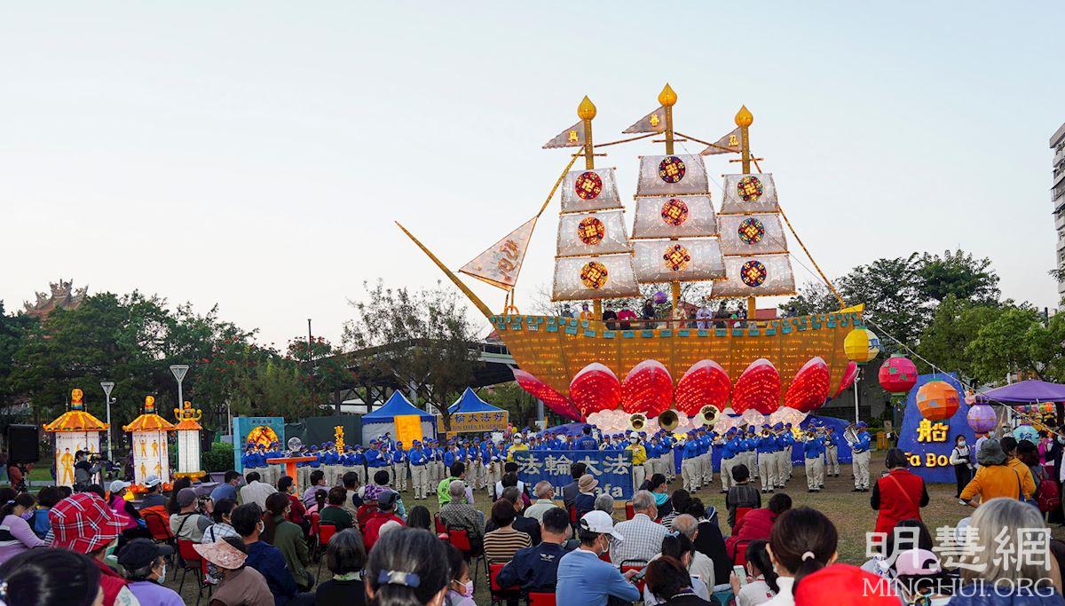 二月十五日元宵节晚上,台湾法轮大法学会理事长萧松山为法船正式点灯。他说:“这座由法轮功学员参与设计、建造、组装而成,唯盼法船花灯能在新年期间光照四方,彰显传统文化敬天重德的良善价值。”