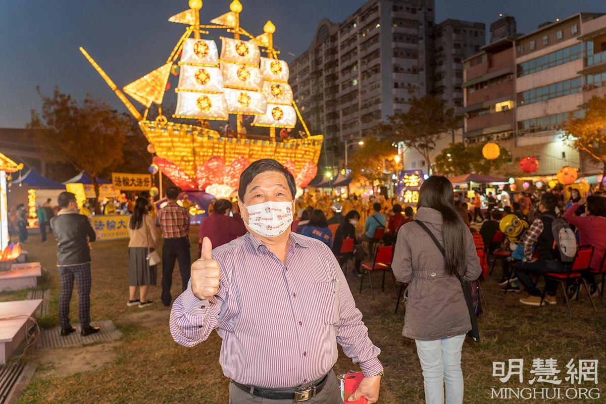 前联合医院院长及健康中心执行长张宏泰表示:“法轮大法法船花灯很壮观,风帆上九个法轮正反旋转,散发着亮光和惊喜,带来祥和平静的氛围。法船精致又坚固的法船,不仅能踏上,让人身历其境,更能体验法轮大法好真善忍好融会一起,实在很有创意!希望有更多人一起来赏灯,共享这宁静美好的夜晚。”