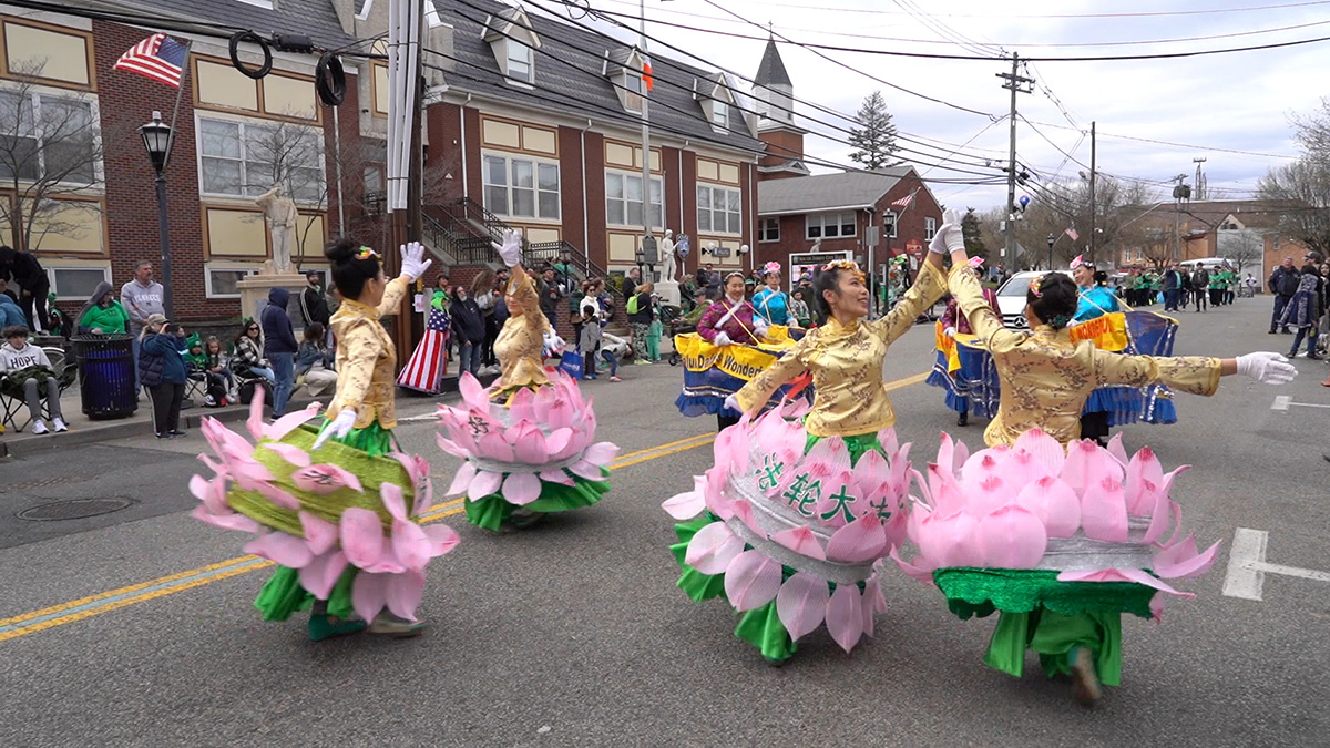 该游行是新泽西州最大的游行之一,因受疫情影响而中断两年。今年的游行队伍有七十多个团体参加,其中包括二十多个乐队和两千多名游行者。当法轮功学员的队伍经过时,路旁的观众连连鼓掌、喝彩。