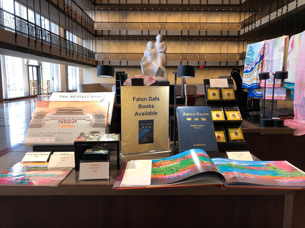 ![]() 图1:二零二二年三月十日至二十日,神韵纽约艺术团在纽约林肯中心大卫寇克剧院上演了十场演出。神韵礼品柜台特别为观众提供了法轮大法的主要著作《转法轮》和《法轮功》两本书;因为往年每次演出后,都有观众询问什么是“法轮大法”。(神韵礼品柜台工作人员提供) |