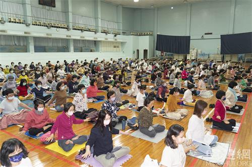 ![]() 图2~3:来自南台湾七县市法轮大法部分学员于三月二十六、二十七日,在高雄市中华电信学院高雄所,举办两天一夜学法交流,第二天清晨于活动中心集体炼功。 |