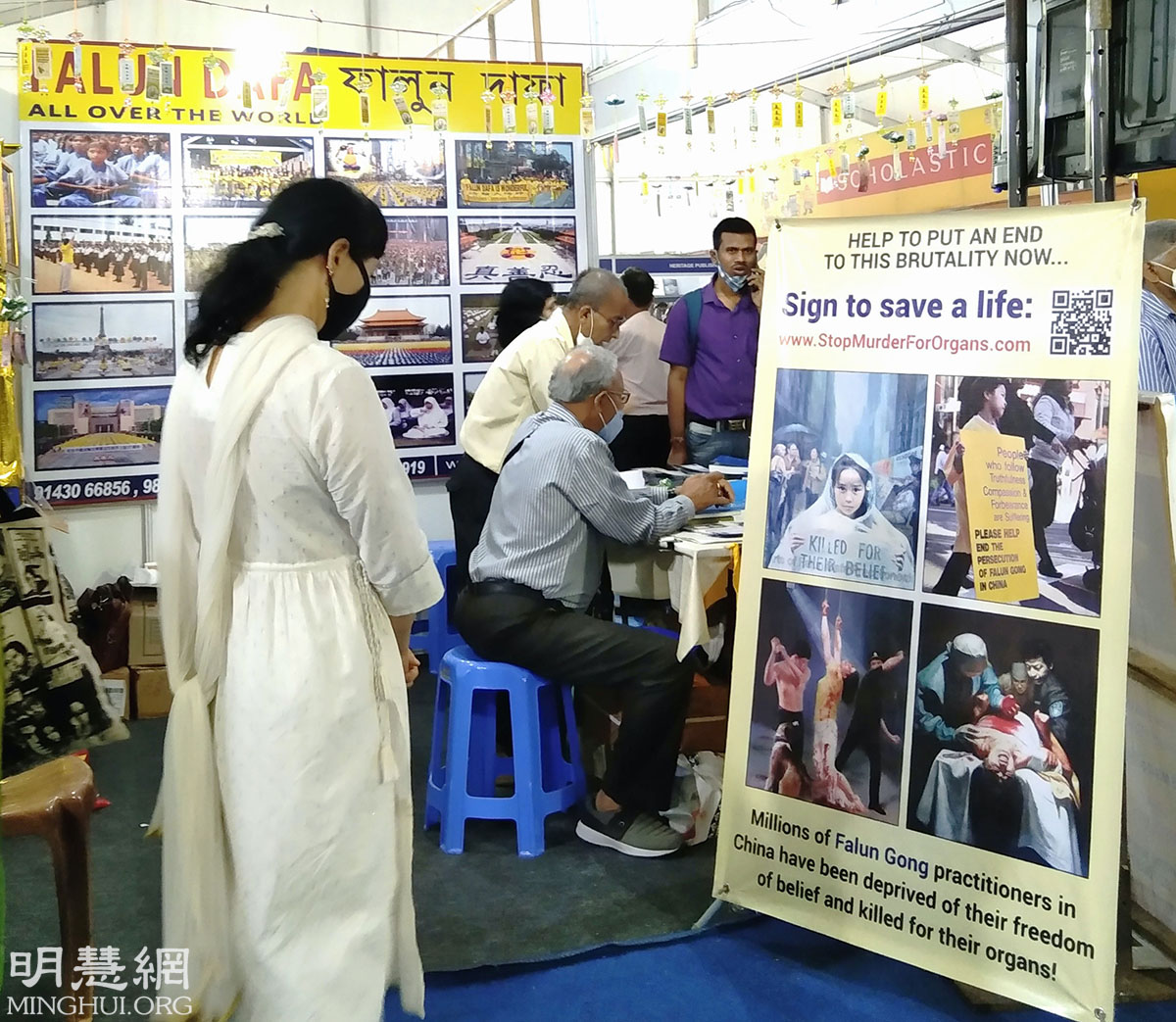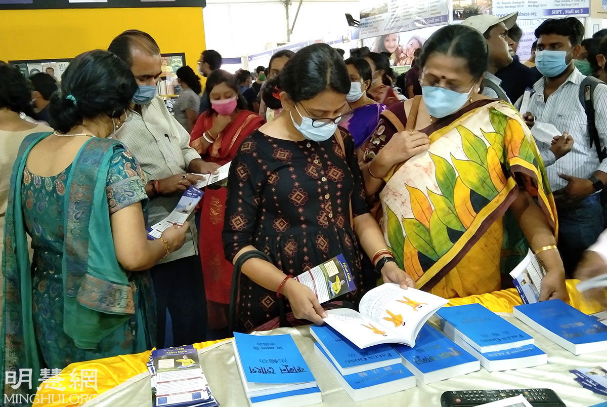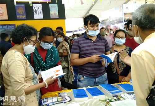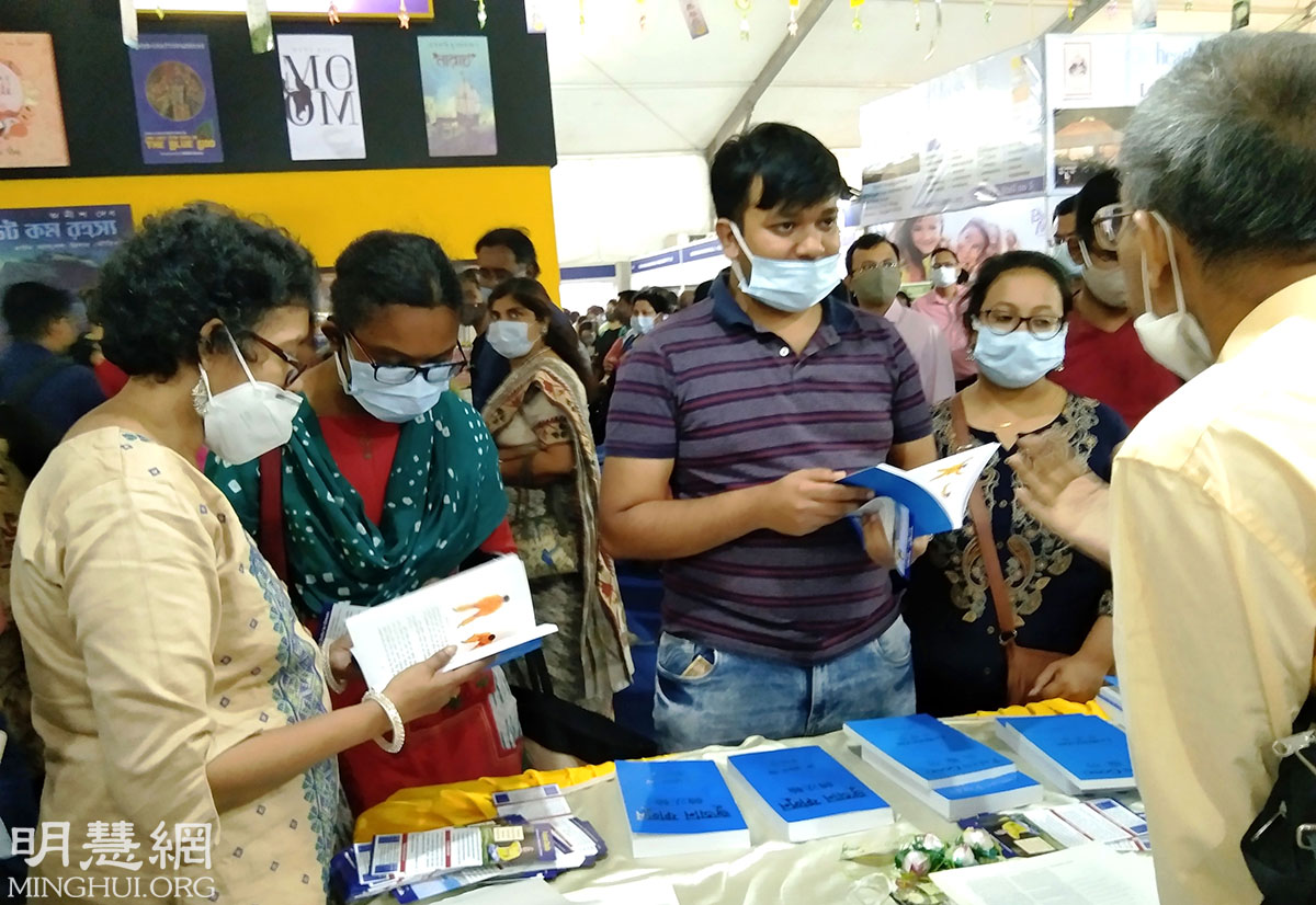 许多人欣喜的发现法轮大法书籍有当地的语言孟加拉语版的,并购买了回去阅读。一位支持法轮大法的人说,在印度没有一个书展上的书可以象法轮大法书籍那样卖的数量那么多。通常,学员们刚布置好展位,就有人来购买书了。