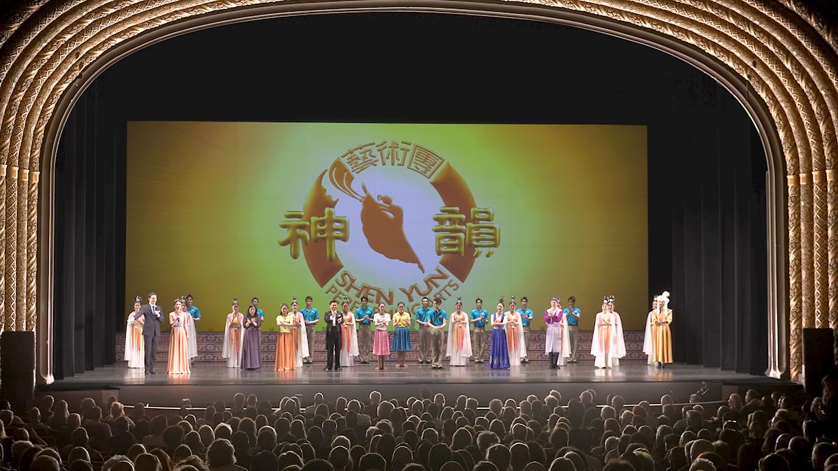 .纪.元;)'>图4:二零二二年三月五日至六日神韵国际艺术团在美国哥伦布市的俄亥俄剧院(Ohio Theatre)演出两场。在雷鸣般的掌声中演员两次谢幕。图为三月六日演出谢幕照。(大.纪.元;) |