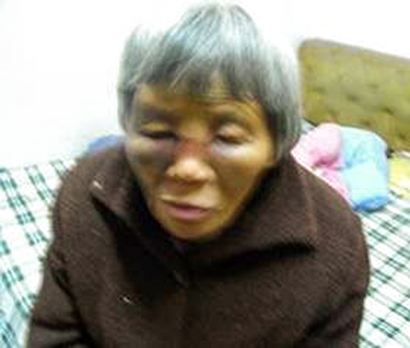 ![]() 图3:王柳珍老人被恶人打得满脸青紫。 |