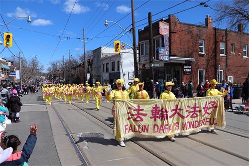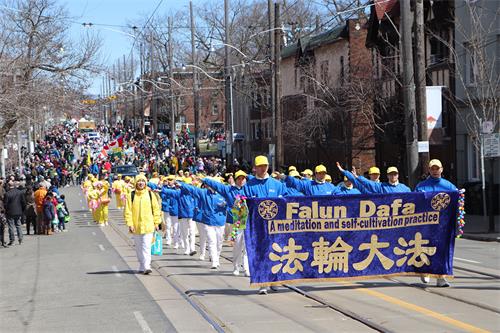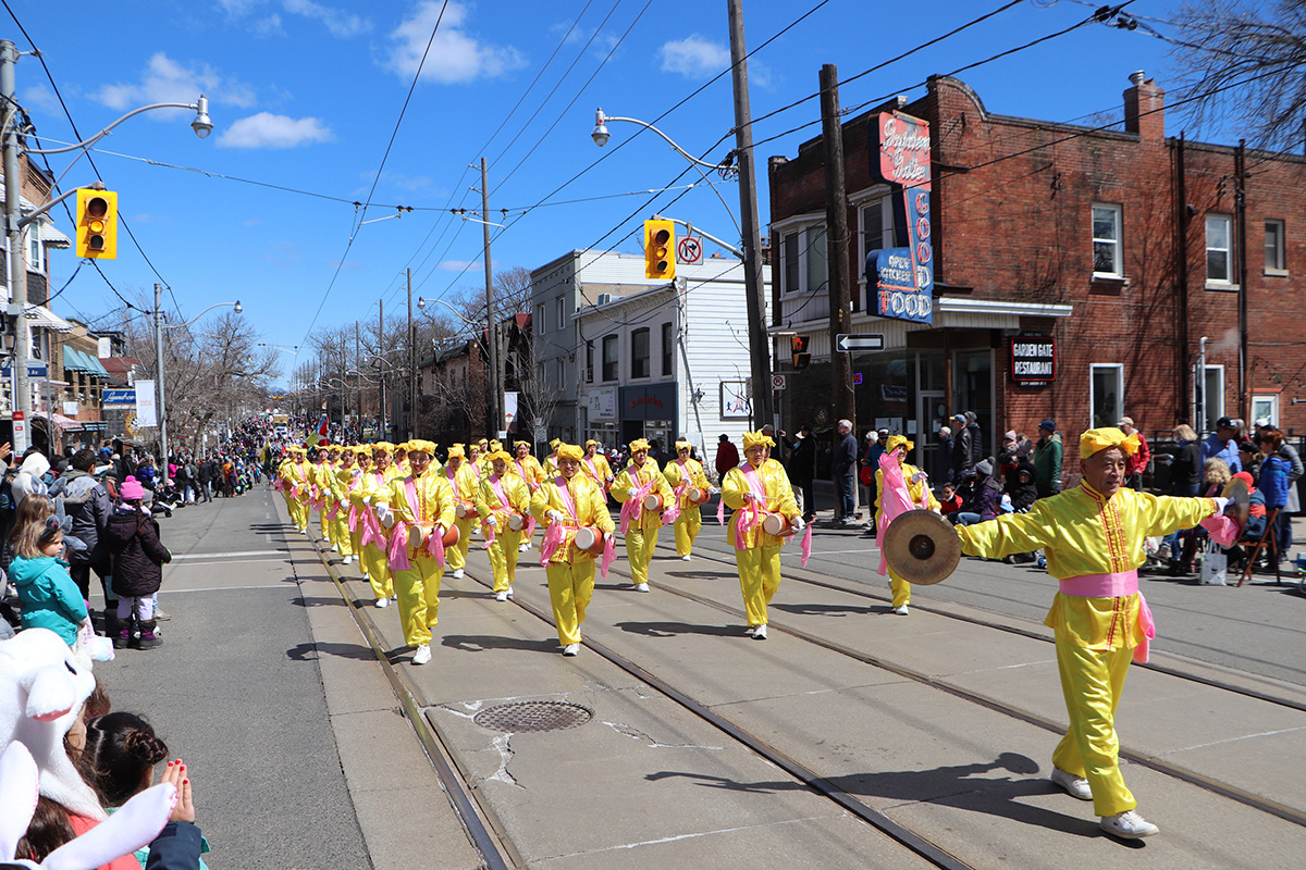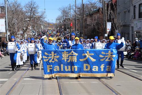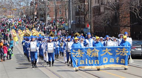 ![]() 图1~7:由法轮大法学员组成的天国乐团、炼功队和腰鼓队参加二零二二年四月十七日的多伦多复活节游行。 |