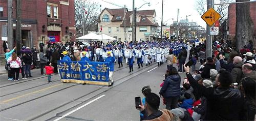 游行过程中,道路两边的民众纷纷为他们的演奏和功法展示鼓掌叫好,有观众表示法轮功学员的游行队伍十分平和;有的表示会把法轮功真相传播出去;有的表示非常喜欢天国乐团的音乐;也有民众表示自己会更深入的了解法轮大法和发生在中国的迫害。