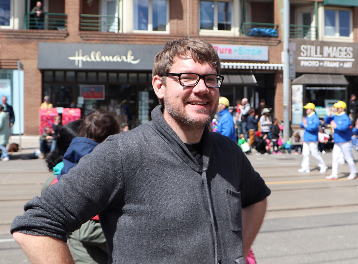 多伦多居民阿诺德(Arnold)说:“法轮功队伍很平和,天国乐团的演奏很棒,我儿子特别喜欢今天的游行,特别是看到这么多不同种类的乐器,很整齐的队伍,孩子们在家里都憋坏了,谢谢你们的到来!”