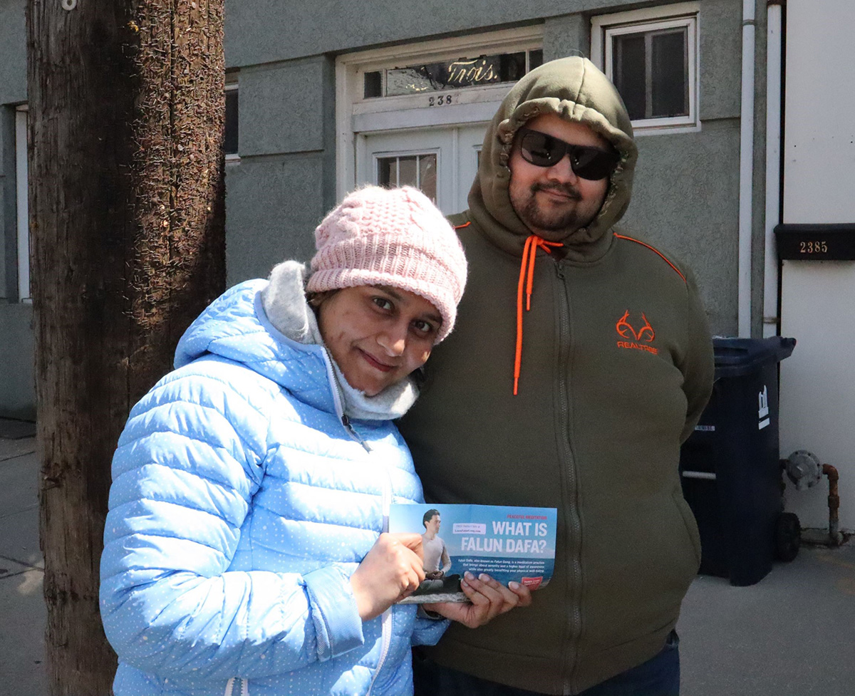![]() 图9:雪梨(Shelly)女士和她的先生表示一定会把法轮功的信息传播出去。 |