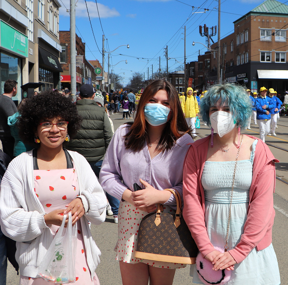 ![]() 图12:多伦多居民丽(Rei中)和友人观看游行 |