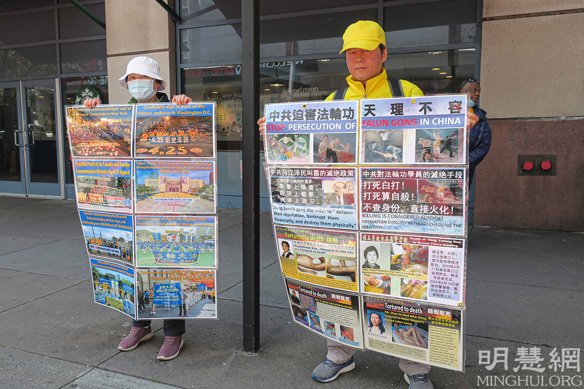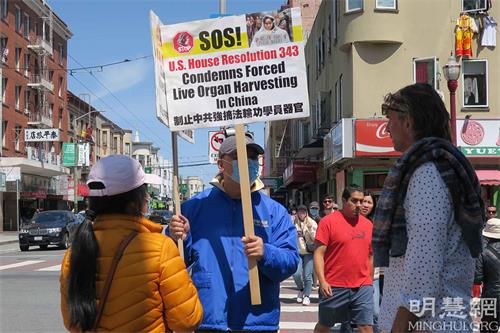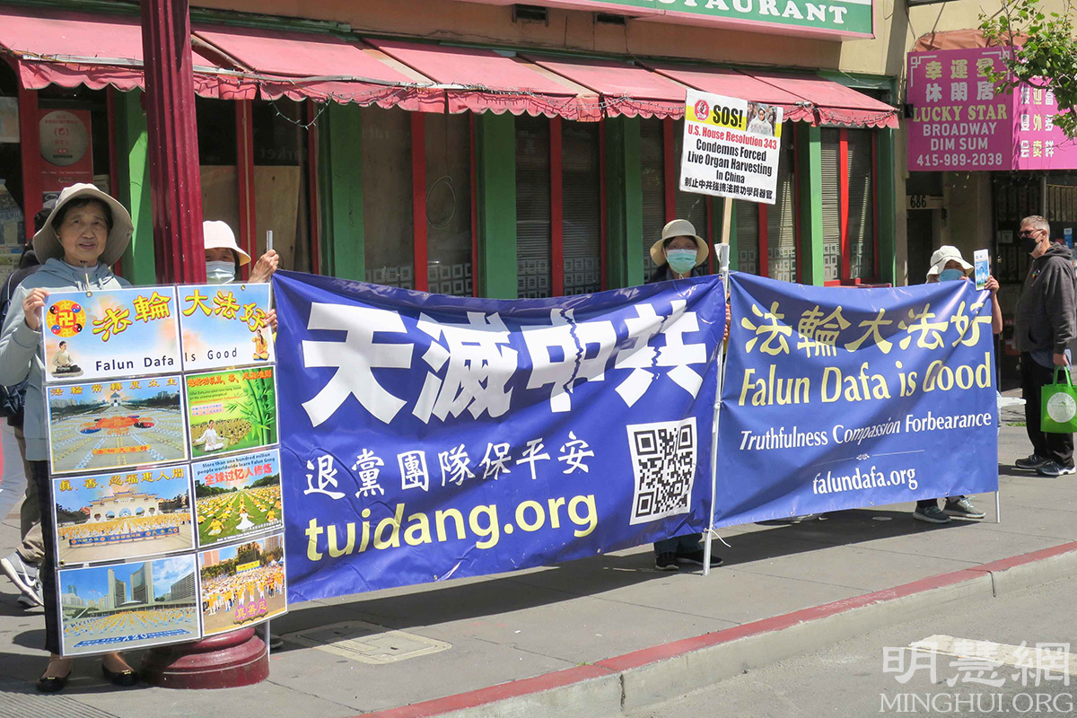 上午十一点,来自湾区各地的部分法轮功学员,齐聚在旧金山市区和中国城等五个地点,在主要街道上拉开横幅,向民众讲真相,格外引人注目,有些民众驻足了解真相后,纷纷表示支持。