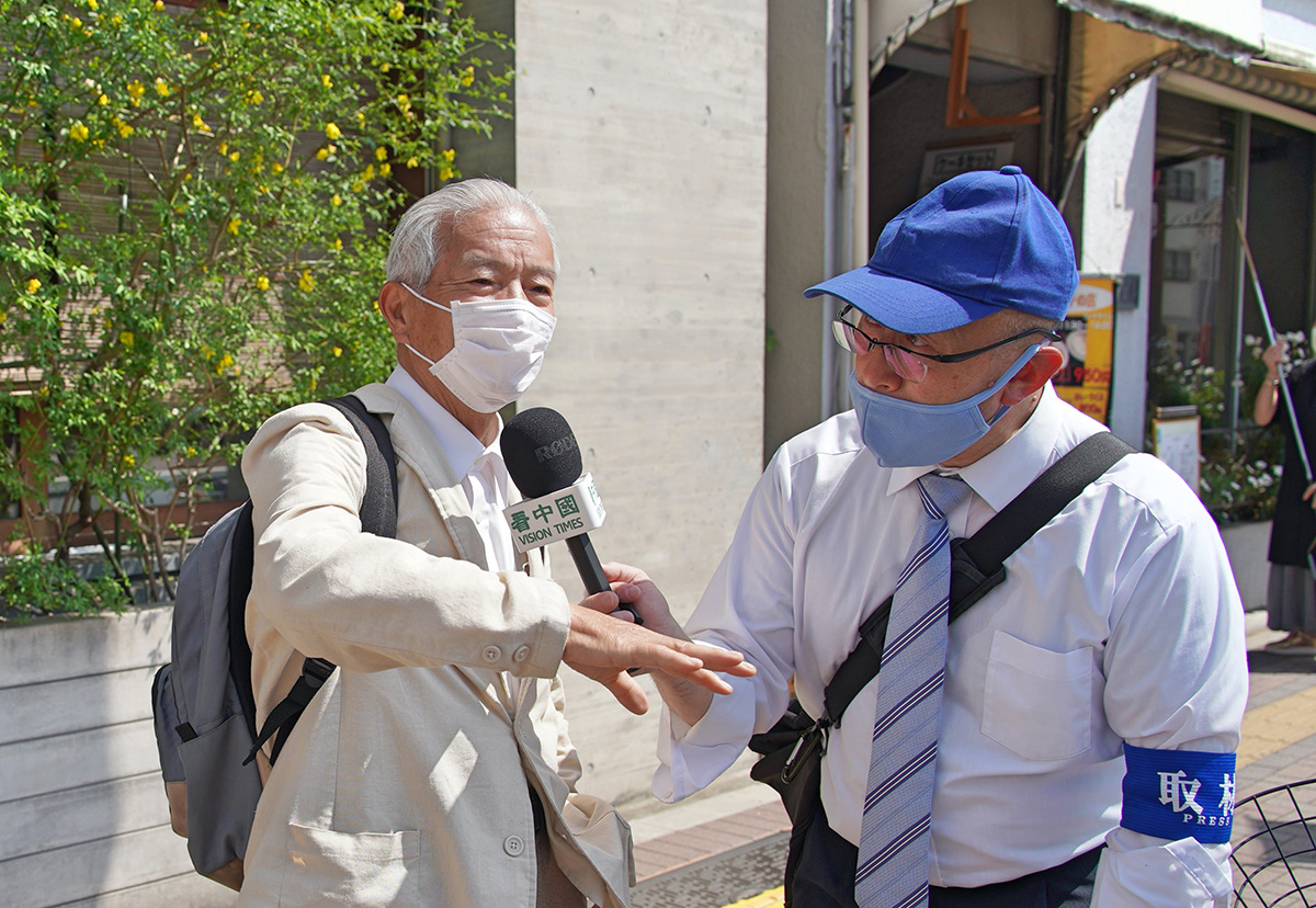 ![]() 图4:根羽(左)先生说:“这种残忍的迫害太不可思议了,中国人应该觉醒了”。 |