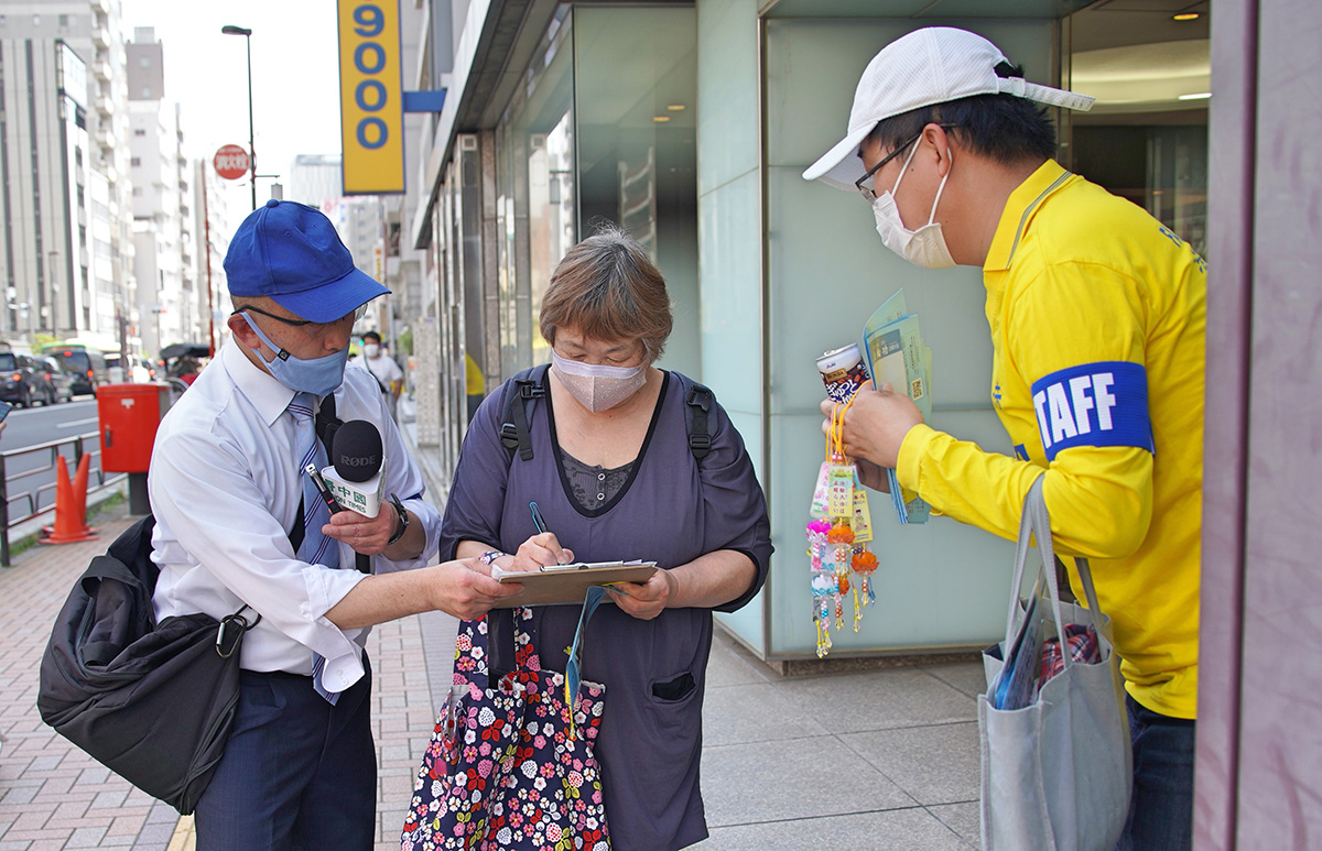 大和女士曾经听说过法轮功,但不知道在中国被迫害的情况。当她看到法轮功学员派发的传单后说:“这场邪恶的迫害早就应该结束了,我来为你们反迫害签名。”她还对学员说:“加油。”