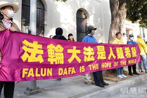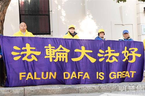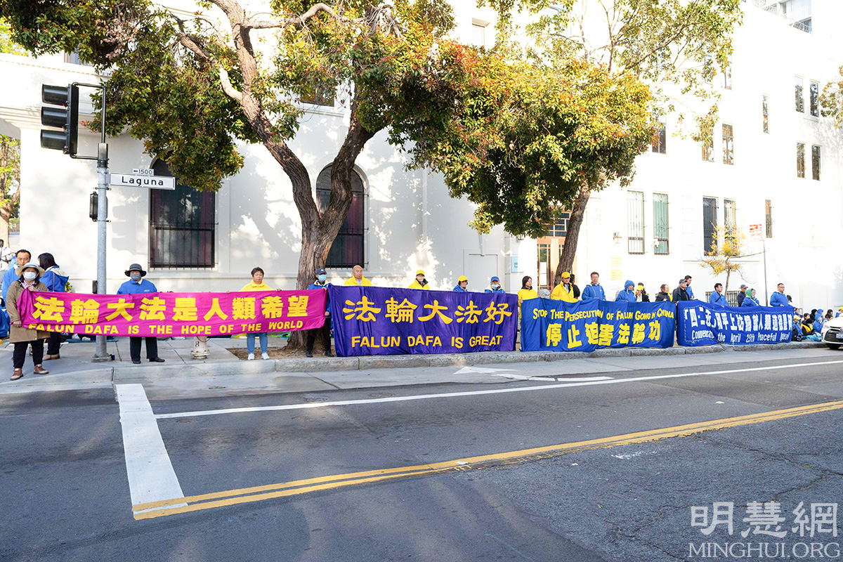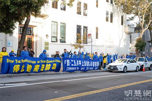 ![]() 图1~6:法轮功学员在中共驻旧金山总领事馆前,纪念“四·二五”和平上访二十三周年 |