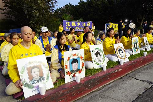 ![]() 图5:夜幕降临,洛杉矶法轮功学员们燃起点点烛光,默默悼念被中共残酷迫害致死的法轮功学员,唤醒人们心中的善良。 |