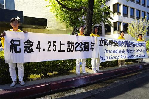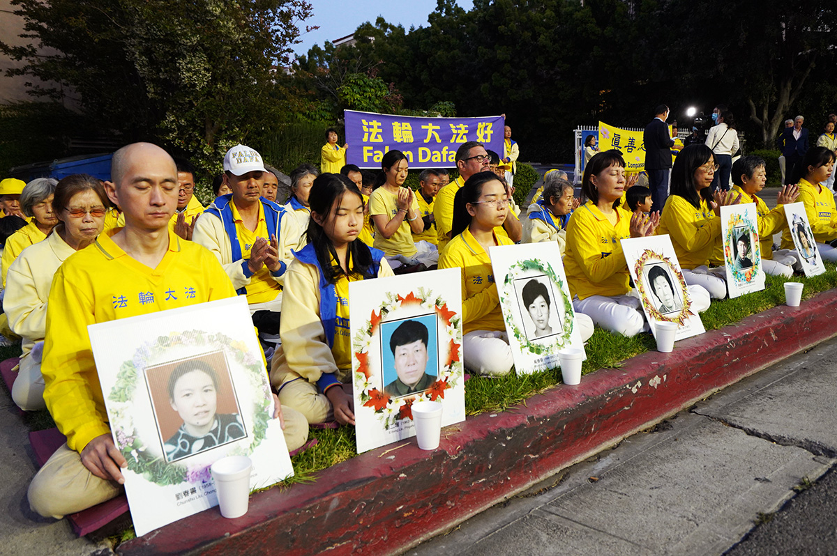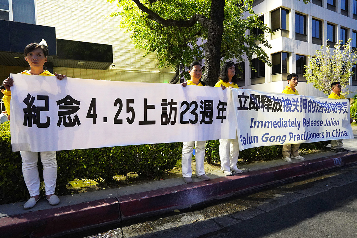 ![]() 图1~4:二零二二年四月二十三日晚,大洛杉矶地区部分法轮功学员聚集在洛杉矶中领馆前纪念“四·二五”万名法轮功学员和平上访二十三周年。 |
