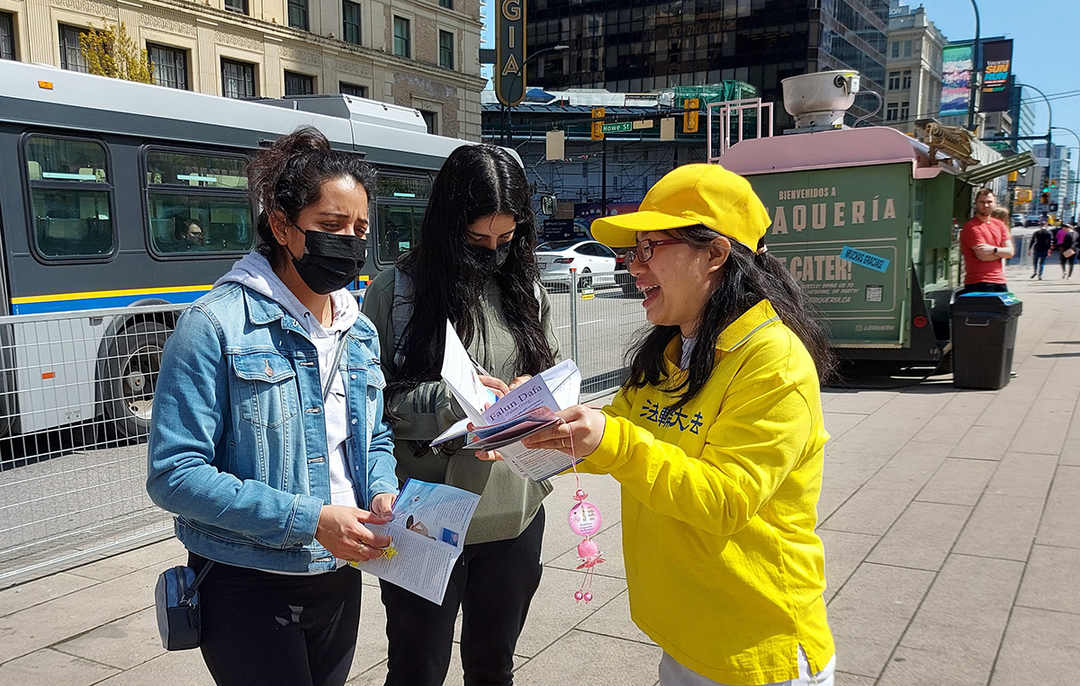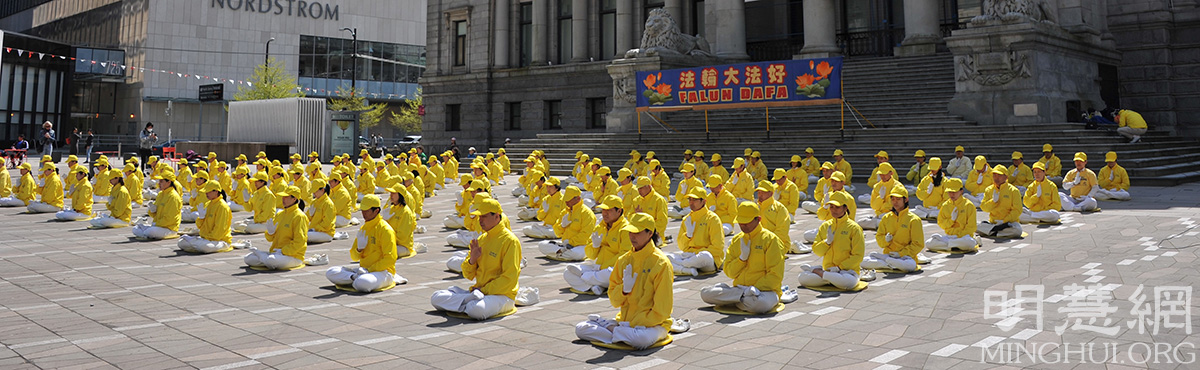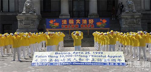 ![]() 图1~2:二零二二年四月二十三日,温哥华部分法轮功学员在市中心的艺术馆门前集体炼功。 |