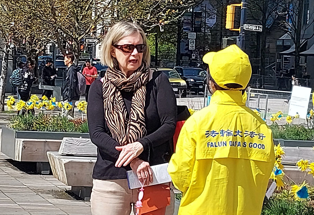温哥华一位艺术教师桑迪(Sandy Fast)了解到法轮功学员在中国遭到的残酷迫害,立即签名支持制止迫害。