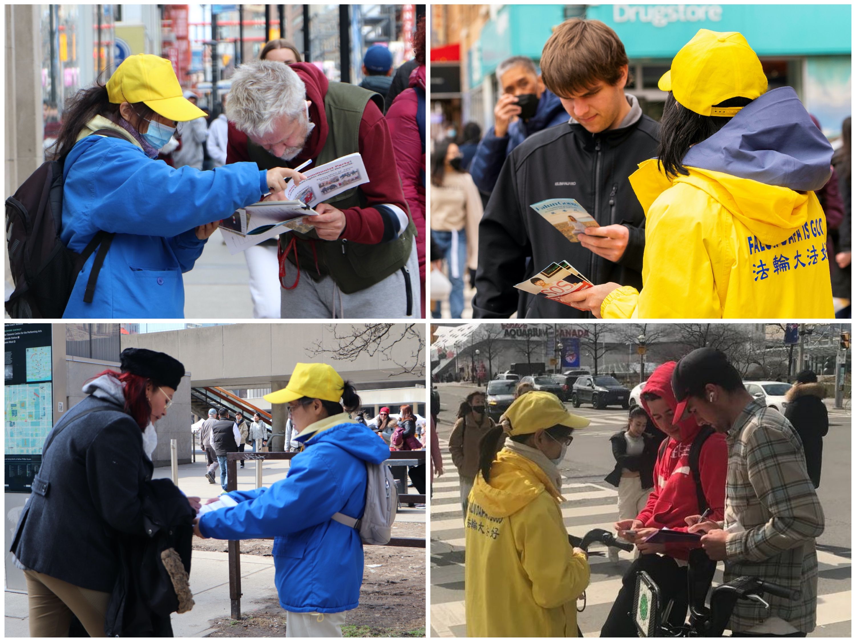 在多伦多博物馆工作的布兰德(Brandy)先生拿起学员的征签表就签名,他非常认真地听完学员给他介绍法轮功,他说:“听完介绍后,我觉得这个功法非常好,我拿了一张传单,上面还有网上免费教功的信息,我一定要学。另外,中共不喜欢的东西一定是好的。”